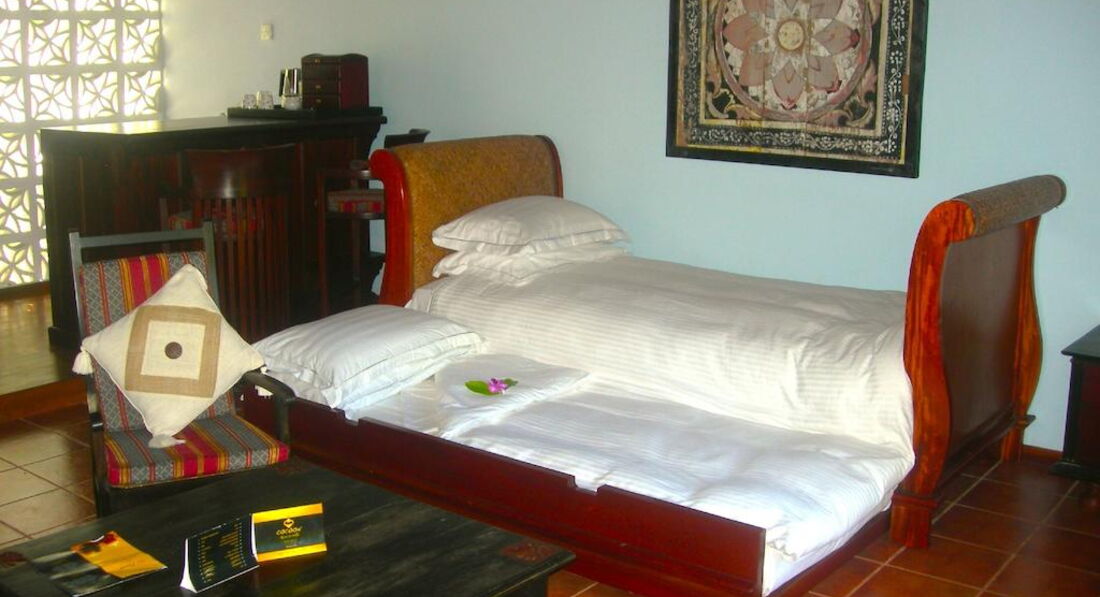 К сожалению, отель постепенно приходит в упадок. На момент нашего посещения в отеле постоянно были заняты не более пяти номеров/вилл из 16, хотя это был сезон. Часть строений не используется: спа-салон не работает и запущен, внутри листья и пыль, водопад одной половины отеля отключен. Чайный домик вообще заброшен и разрушается.