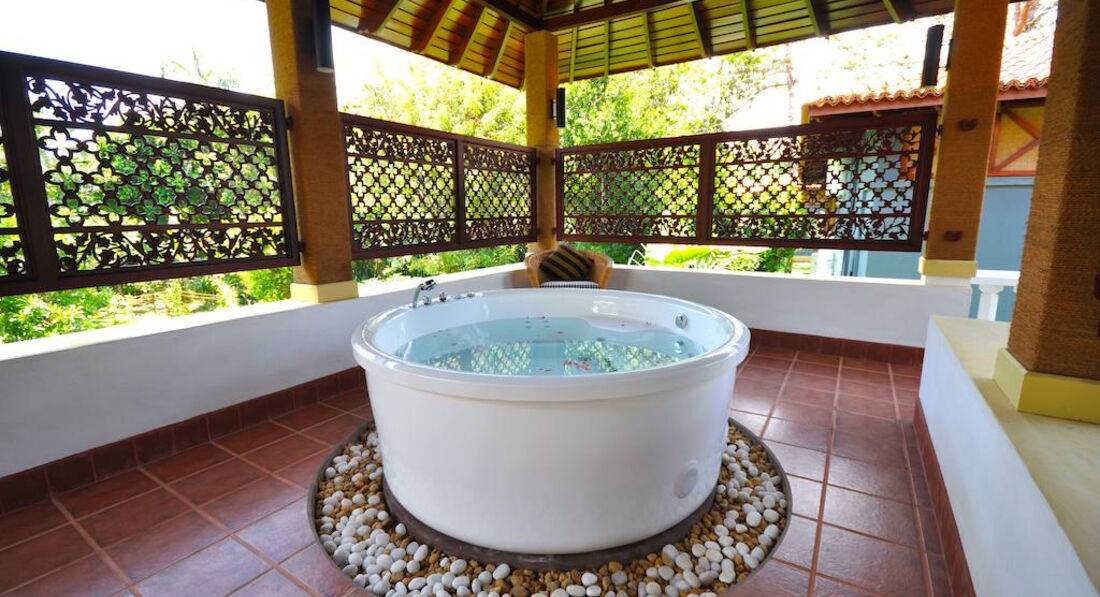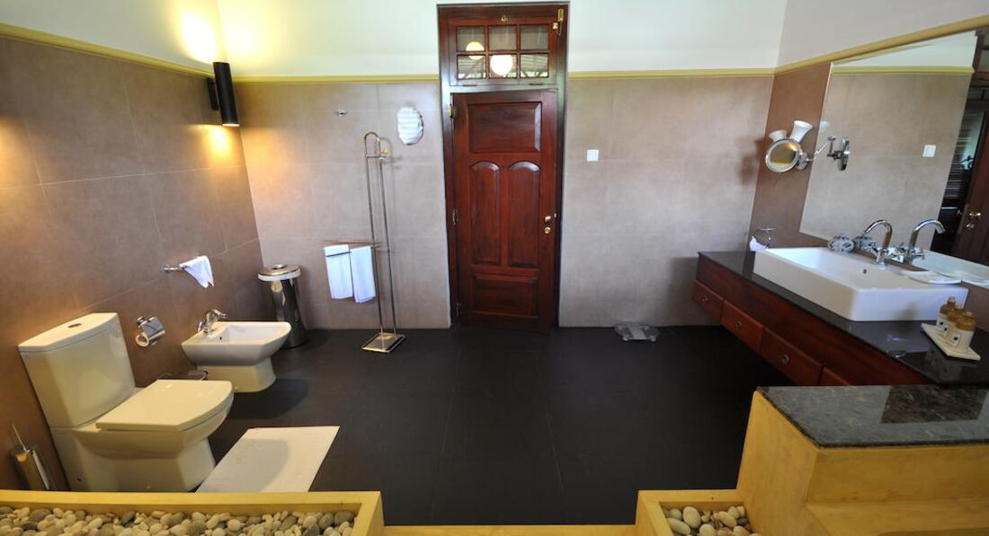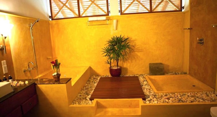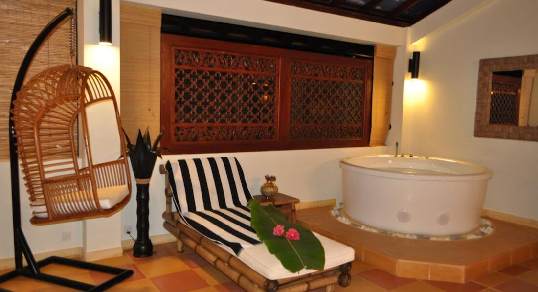 При заселении нам не дали халатов (принесли по просьбе), тапочек у них нет, полотенец только два на двоих (просили ещё два для лица, но нам отказали), DVD отсутствовал (принесли), бар был пустой (наполнение по просьбе). Кондиционера для волос нет, фена тоже нет. Притом, что отель пустовал больше чем наполовину, об уборке номера иногда приходилось напоминать. Периодически выбивало свет на вилле, после этого выключался бойлер и пропадала горячая вода. Приходилось постоянно контактировать с обслуживающим персоналом. Потом пропал интернет, после трех напоминаний нам сказали, что они хотят прийти на виллу и убедиться в его отсутствии. Убедились, после этого еще сутки потратили на его восстановление.