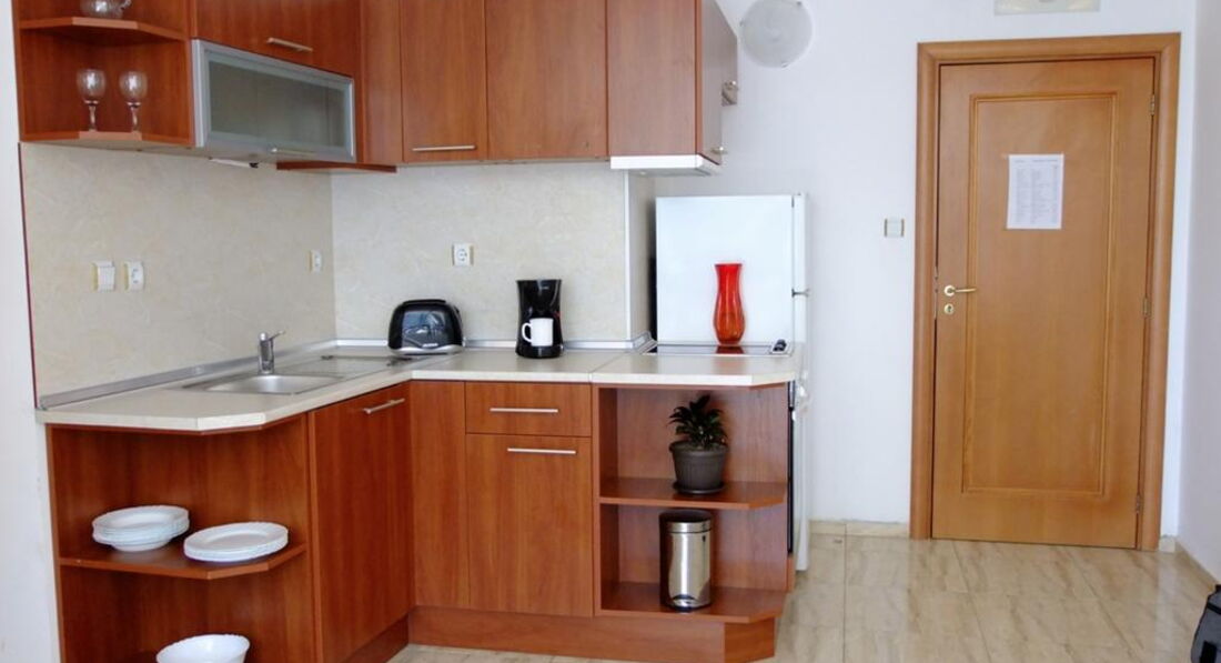 Апартаменты хорошие, с кухонным уголком - всё чистенько, мебель нормальная. Кондиционеры без доплаты, работали хорошо.