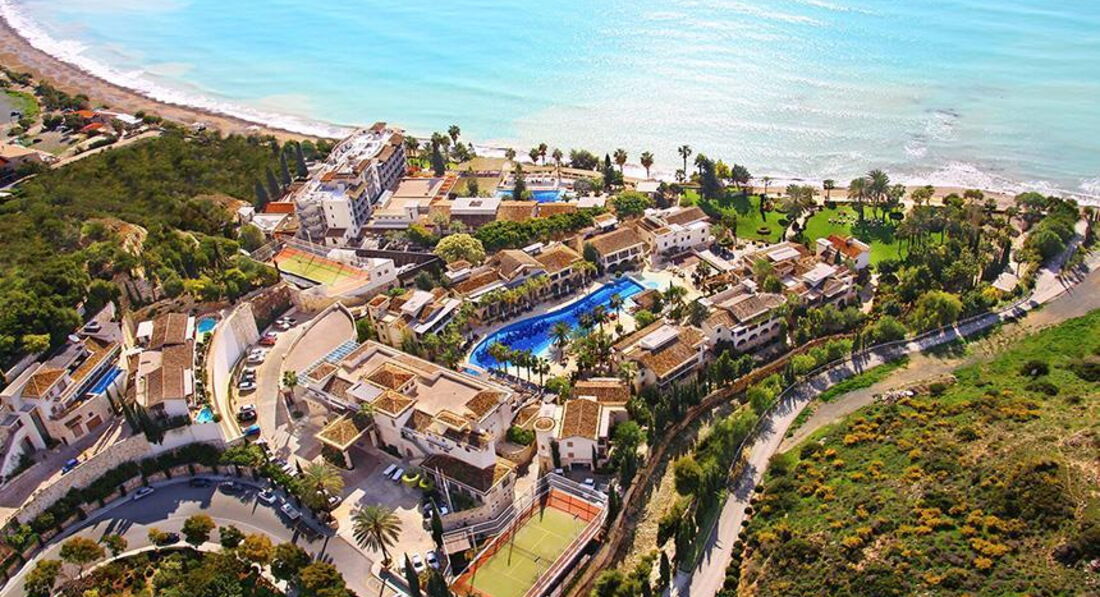 Готель на березі піщаного пляжу.