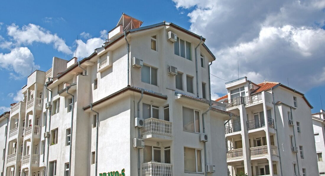 Апарт-комплекс Bravo-5 3* знаходиться в центральній частині курорту за кілька кварталів від головної торгової зони. Поруч банк, поліклініка, аптека, супермаркет, до основних розваг курорту та ресторанів – 10 хвилин ходьби. За 300 м від готелю знаходиться популярний ресторан Djanni. Студії та апартаменти пропонують все необхідне для тривалого перебування на відпочинку. Можна пропонувати для сімейного відпочинку. Рік будівництва 2005 року.