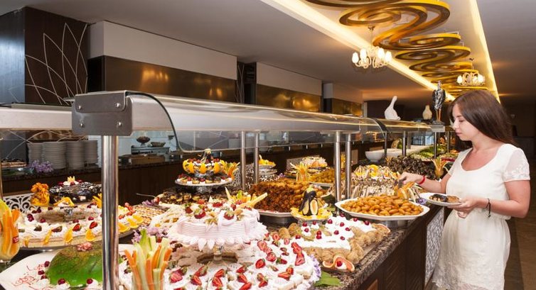 Включає: сніданок (07:30-10:00), пізній сніданок (10:00-11:00), обід (12:30-14:00), вечеря (19:00-21:00) - шведська стіл; закуски протягом дня у барах готелю, алкогольні та безалкогольні напої місцевого виробництва. Свіжі соки, морозиво - платно.