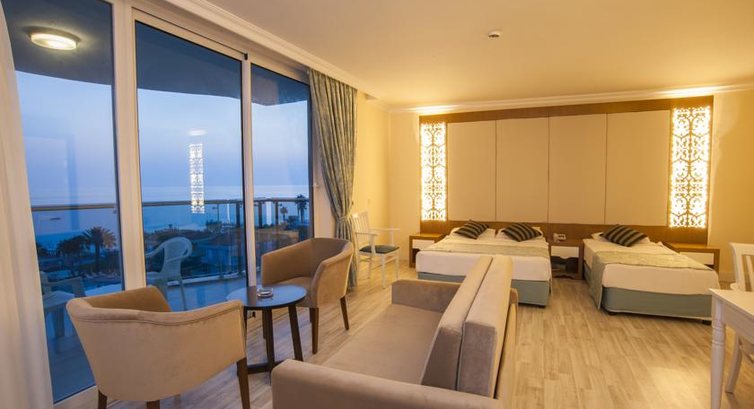 Читали про этот отель до приезда. Сильно повлиял рейтинг отзывов, поскольку он достаточно высок. По приезду ждало разочарование. Кроме пляжа, который действительно рядом с морем, ничего приятного в этом отдыхе нет. Хотя и тут надо отметить - каменистый пляж не для всех, если у вас нет специальной обуви, то постоянный дискомфорт вам гарантирован. Море все время было не спокойное, огромные волны с накатами: для пожилых людей и маленьких детей не подойдут. Несколько дней штормило, купаться нельзя было. В общем море довольно своеобразное по всему побережью. Остается как вариант бассейн. При том, что отель не был заполнен на 100 %, лежаков не хватало, занимали их с 6 утра. Что касается территории, то она не большая, пойти кроме отеля некуда. Еда на 3-4 звезды. Разнообразия не дождетесь. Завтраки в основном строятся на яйцах + какие то овощи. Голодными конечно не останетесь, но однообразие приедается. Из мяса в основном курица и мясной бутер (сердце, печень и т.д. не всегда можно даже разобрать). Официанты вечно уставшие и потухшие. Бесит в столовой, когда люди сидят за столами едят, официанты возят рядом со столами тележки для отбросов, становятся возле тебя и начинают сгребать и сортировать еду по ведрам. Ощущение не для всех. Темная столовая, наверно, чтобы мухи не так видны были. Что касается номеров - это отдельная история. Понятно, что реновации давно не было, но элементарных крючков для полотенец, стакана для зуб. пасты и щетки тоже не видать. Полотенца то на душевой кабине висели, то по номеру, то на балконе.. Полка с полотенцами внутри душевой кабины!!! Уборка номера - это вообще не уборка, но видимо, если доплачивать - будет лучше. Кто живет на верхних этажах и хочет пользоваться лифтом, запаситесь терпением, это не для слабонервных дождаться. Что еще. Из плюсов. Хорошая анимация. надо отдать должное. Водное поло, розыгрыши приза за водное состязание вас порадуют. Вечерние развлечения однообразные на любителя. Ходили смотреть в соседние отели на вечерние развлечения - ощущение, что всех аниматоров учили на одних курсах и выдали одинаковое пособие для заучивания - одинаковые конкурсы: один в один. Брали экскурсию на корабле с купанием на пляже Клеопатры, с выходом в открытое море к дельфинам, с заездом в разные бухты. С человека 20$. В итоге, что получили: Покатали нас на корабле, гид ничего не рассказал, кроме кривляния на русском, английском и турецком языках. Пляж Клеопатры видели только из далека, без объяснение проехали мимо в какой прибрежный тупик для купания. Но как говорилось раньше - море своеобразное, купались только самые отважные. В открытое море тоже не попали, все проехали мимо, по итогу отвезли в исходную точку. Зря потраченные деньги. Напоследок, скажу так. Если уж совсем некуда деваться материально,тогда вам сюда. Хотя за эти же деньги есть другие места и отели, где вы останетесь довольны. Этот отель не рекомендую.