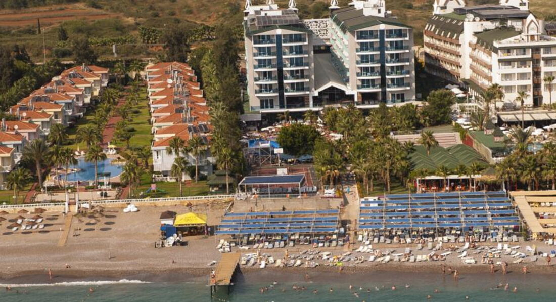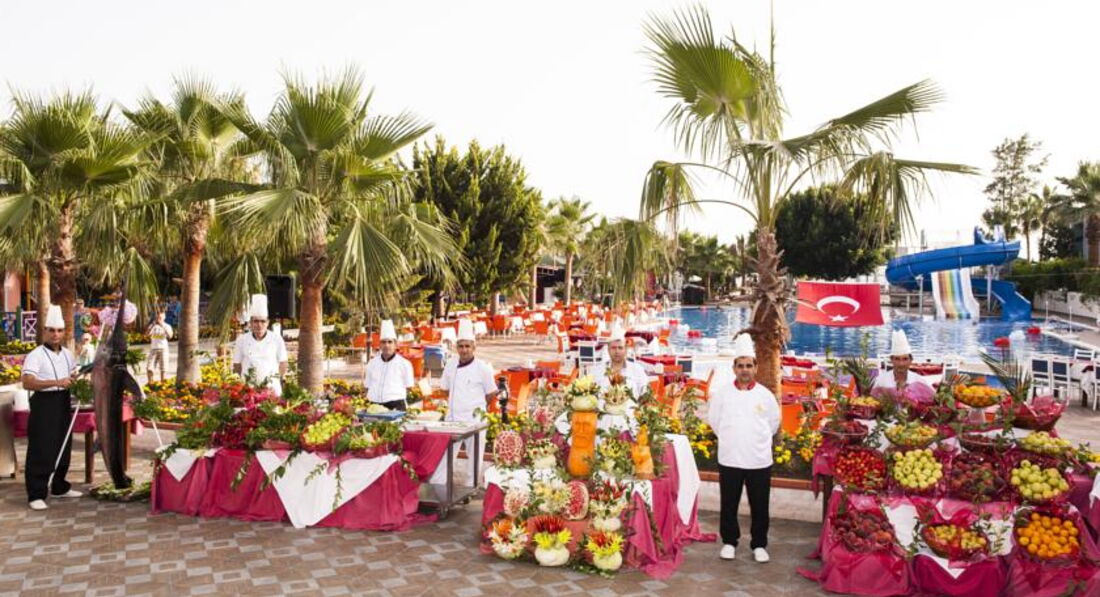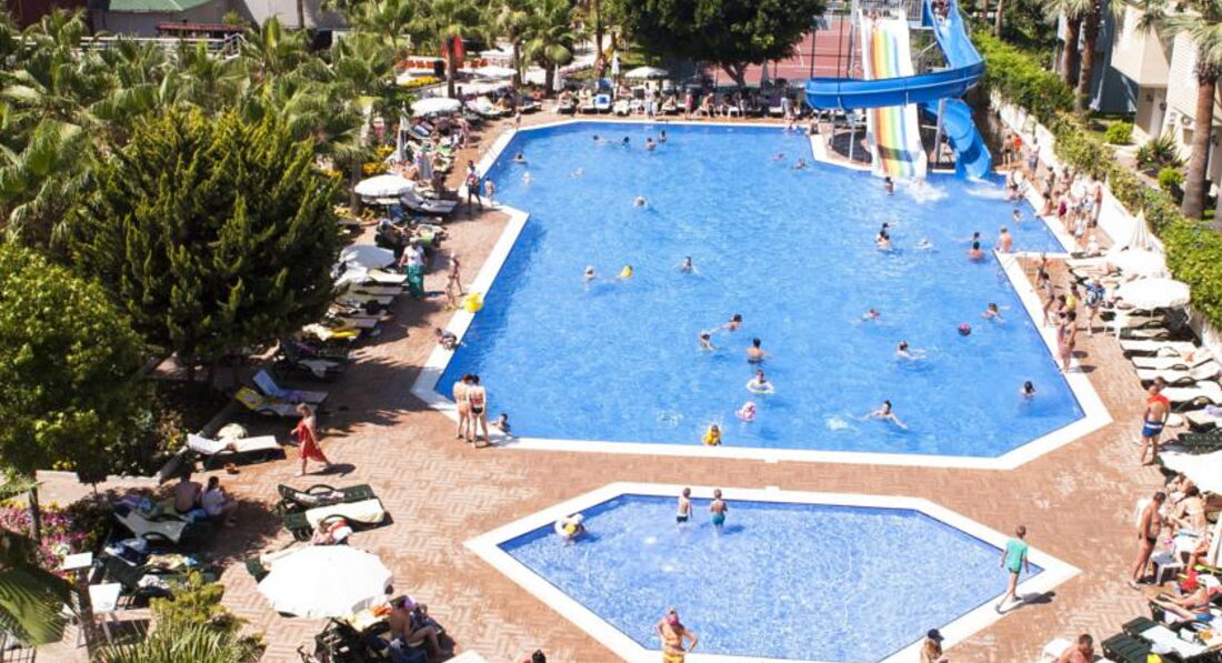 Территория отеля слишком мала как для такого количества отдыхающих уже в июне. Рано утром многие бегут занимать лежаки у бассейна и у моря личными вещами и полотенцами, а потом идут в номера или на баре висят, я не понимаю этого прикола. Море прозрачное, но вход в море каменистый, поэтому лучше приезжать с обувью для плавания. Детские горки работают не весь день и дети иногда спускаются по горкам без воды, но за этим никто не следит, кроме родителей. Персонала реально не хватает: в бар за фантой или спрайтом стоишь в очереди от 5 до 10 человек, а люди, чтобы не стоять долго в очереди набирают от 2-х до 4-х напитков за один раз. Не все бармены приветливые, наверное устают от большого потока людей. Кстати, я малопьющий, а такой шмурдяк, как наливают там вообще не пил. Там нет ни алкогольных, ни слабоалкогольных напитков нормального качества в принципе. Это всё сплошной отстой. Кухня тоже бюджетная. Курица и жареная селедка (скумбрия) - это из мяса. Ассортимент из фруктов слабый. Только на турецкую ночь порадовали более менее спелым арбузом и дыней, в остальные дни яблоки, апельсины, не очень спелые арбузы и грейпфрут, который тоже зеленоват, короче на любителя. Сладости отстой!!! Это мой 4-ый визит в Турцию и я знаю, что говорю. Турция - это шикарные овощи и фрукты, великолепные восточные сладости!!! Но это не здесь. Но в целом еда съедобна. Анимация порадовала в турецкую ночь, а так средненько. Короче, отель экономит на всём, что можно. На еде и напитках, на обслуживающем персонале и лежаках, на инвентаре и полотенцах. За территорией отеля скучно, с одной стороны отели с другой - дорога. Забыл сказать, уборка номера всегда была на 5 баллов. В целом отдых удался, так как я знал куда еду и не зацикливался на мелочах. Кто любит сервис и внимание, лучше выбрать другой отель. Интернет скорее нет, чем есть. Надеюсь вам будет полезен мой отзыв.