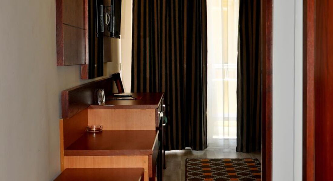Первая фраза при выходи из трансфера - "а что? добротное советское здание". Хотя это было только первое впечатление. персонал нормальные адекватные ребята! когда мы приехали сдали ваучеры на заселение первым делам нам дали браслеты и отправили на обед т.к. он заканчивался через 10 минут) номером я очень доволен взгляд вправо - горы влево - море) ровно у нас под окном стоял гриль на котором утром жарили яичницу и оладья а вечером мясо запах от которого напоминал что пора есть) на удивление пиво не бодяженное и местный джин очень даже ничего) пишут что уборщики игнорят таблички не беспокоить - бред. чаевые не оставлял каждый день чистые полотенца когда уезжал дал 100руб на прощание) все время лебеди кораблики лепестки роз и т.п. готовят ребята офигенно минимум 4 блюда только горячего каждый день торты овощи салаты - все свежее. пляж чистый особенно при учете того что урн я на пляже не видел. по поводу анимации.. ну дискотеки мне не интересны хотя народ ходил. в мафию каждый вечер играли проводили конкурсы а днем водное поло и волейбол. постоянно детей приглашали в мини клуб правда "че-как?" не знаю детей у меня нет а меня не пустили)) есть один косяк интернет только на ресепшене в связи с этим у нас родилась фраза "пойду схожу в интернет" у меня на 5ом этаже ловил вайфай соседнего отеля но через раз =/ в целом мы довольны. но смотря кто за чем едет - мы просто хотели спокойно отдохнуть.