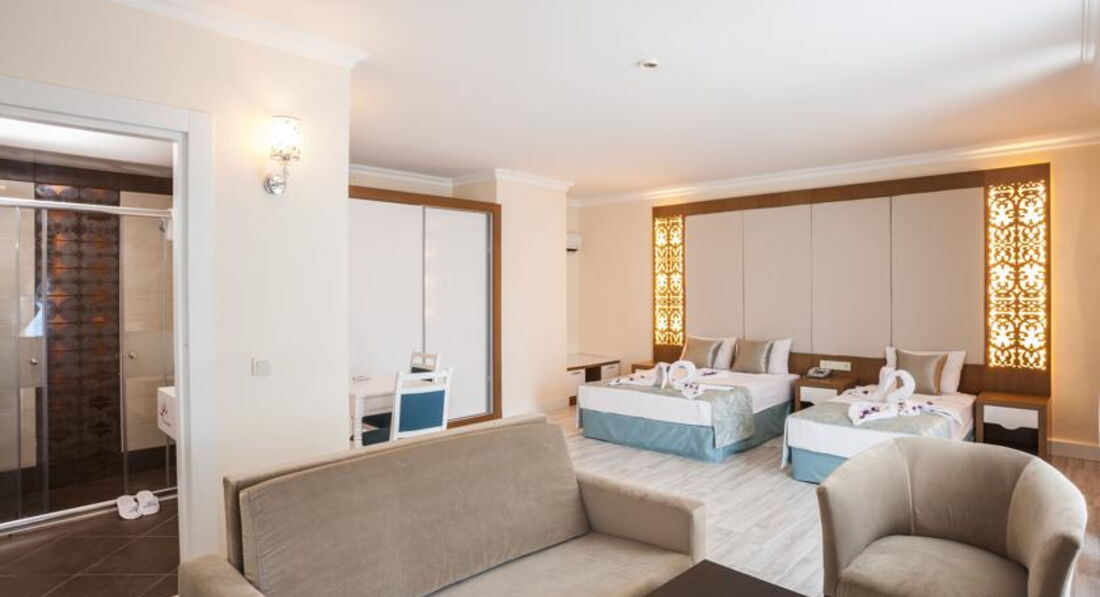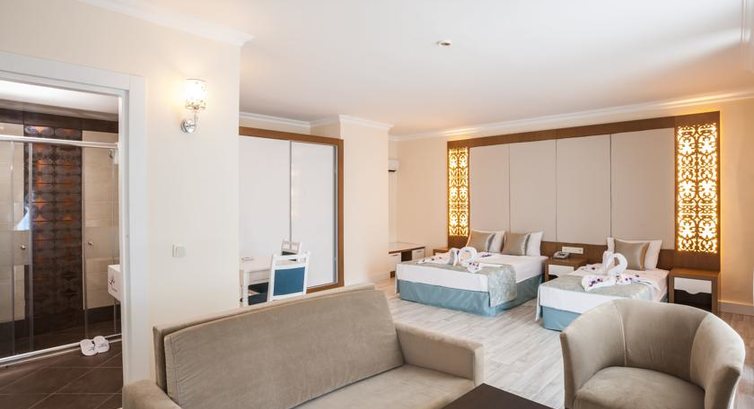 Мы приехали в отель ночью, на ресепшен очень быстро всё оформили, номер был на четвертом этаже, все работало,вода горЯчая была всегда. Отдых удался, аниматоры молодцы, старались всех расшевелить и задействовать. Очень понравились турецкие ночи по четвергам, здорово и весело. Очень хотелось бы в номере иметь чайник. Уборка в номере средняя. После первой ночи попросили заменить подушки, они были очень большие, нами их поменяли, на все просьбы персонал реагирует и по возможности устраняет. Очень не понравилось, что полотенца пляжные бесплатно не меняют,выдали и замена на чистое стоит 1$, мы не меняли и за десять дней они были стоячие. К еде у меня лично претензий нет, устраивало всем более чем. Но люди хотели чего-то большего.:-) . Территория отеля маленькая, но все компактно. Очень плохой интернет, просто ужасный, слабый и это напрягает, на связи быть удавалось очень редко. Но все моментики отрицательные настроение нам не испортили!!! Мы не заморачивались , а просто наслаждались морем, солнцем , улыбками персонала(хотя их было не очень-то много)!!! Персонал разный, был парень на центральном баре очень злой и всеми недоволен, казалось, что его напрягает и бесит всё и все! Ну и фиг с ним:-). В общем все хорошо , отдыхайте, наслаждайтесь прекрасными моментами и всем позитива и отличной погоды!!!!