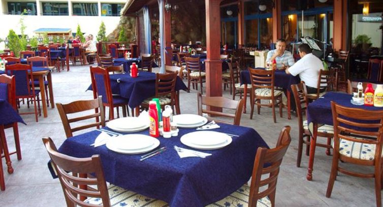 На первом этаже также находится ресторан, Steak-house 'Friends' (в том же помещении, где по утрам подавали завтраки). Мы там были два раза. Первый раз, вечером, нам несли суп и спагетти ровно час, а потом еще минут 45 несли счет. Второй раз я там пила чай с десертом, в 11 утра. Официант мне просто на словах сказал сумму заказа, я посчитала в уме, у меня не сошлось, я попросила счет. Официант просто ушел. Потом пришел забрать посуду - я снова попросила счет. Он сделал вид, что не понял. В конце концов счет он принес. Там был мой заказ и рюмка текилы (!). Текила стоила 1 лев, меня он обсчитал на 50 сотинок, из-за такой суммы поднимать скандал не хотелось, но осадок остался - такая наглость! Это был единственный такого рода неприятный опыт за все пребывание в Болгарии - в нашем же отеле. Официанта звали Ivo, если вдруг кто-то из представителей отеля это прочитает.