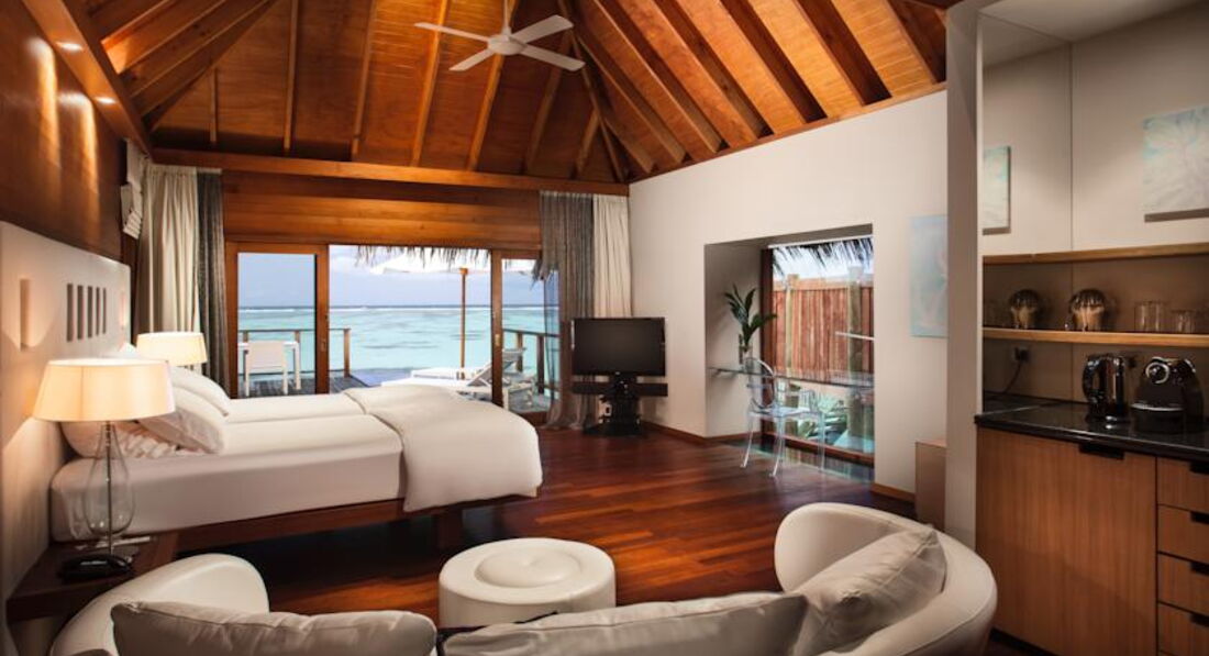 1 Premier Water Suite (304 кв.м., номери розташовані на острові Rangali Island. Дві спальні (з великим круглим ліжком та в іншій кімнаті з 2 великими ліжками), вітальня, 2 ванні кімнати в кожній спальні, скляна панель на підлозі, джакузі на терасі, балкон з барбекю, індивідуальне обслуговування).
