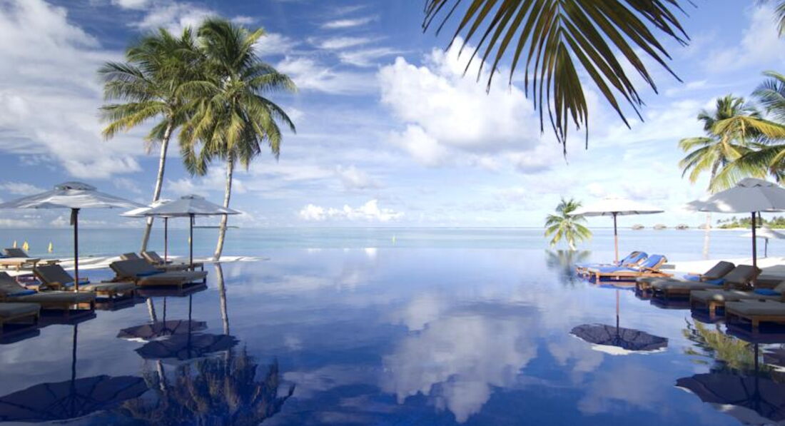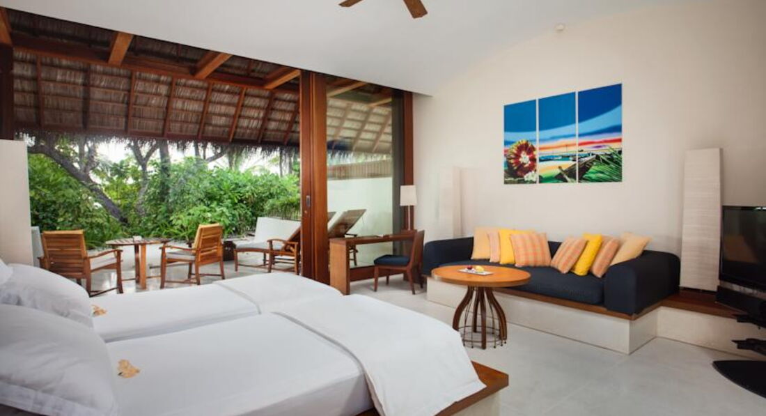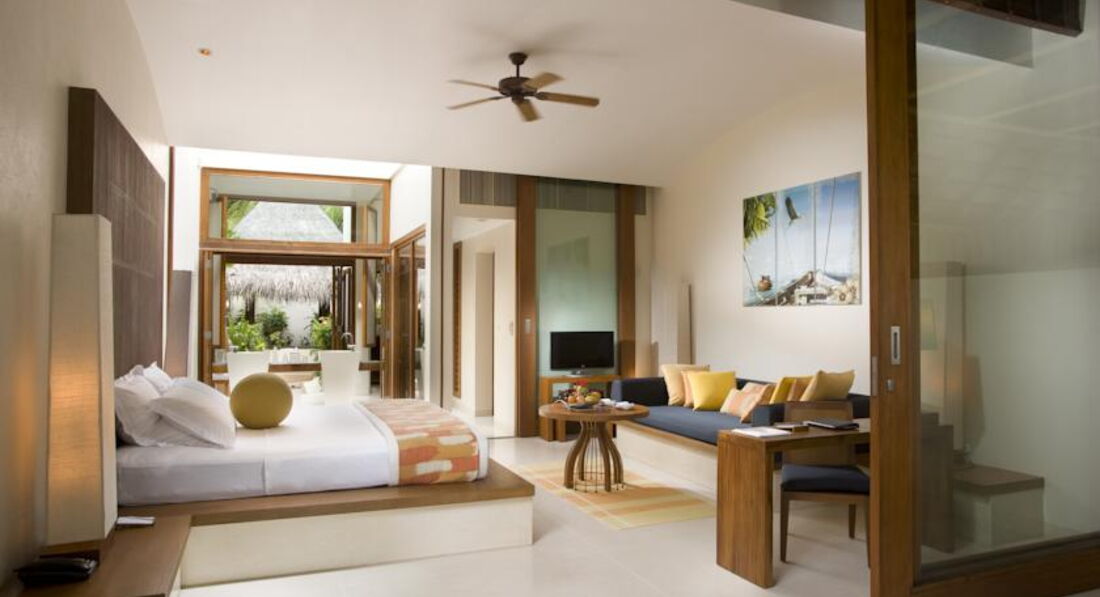 Побывав на многих островах, хочу сказать отель - лучший из 5* что я видела. Начиная с приема в аэропорту. От отеля носильщик, проводник до вип зоны именно этого отеля ( где вам предложат - полноценный швецкий стол с фруктами, закусками, вторим и даже супом. Напитки, сладости) есть душ. Массаж бесплатно. Влажные полотенца и огромные лежаки, где можно полежать ожидая самолет. Есть интернет. Отличные самолетики отвозят на остров. Встречает рускоговорящий гид. Нас встретила прекрасная Ния - замечательная, отзывчивая, интересный собеседник ( что не маловажно каждый день узнавала как у нас дела, все ли нам нравится, хорошо ли убрались.....не навязчиво и с таким искренним беспокойством!!!) сейчас сижу на веранде номера и пишу отзыв, потому что меня переполняют чувства любви к этому острову, к людям которые делают твой отдых комфортным и приятным. Завтраки и ужены у нас включены. Отличны завтраки ( яйца во всех видах, китайская кухня, японская, индийская... Сладости, фрукты, молочное, фреши, смузи, мюсли, КАША овянка! Не сладкая что важно для отдыхающих с маленькими детьми.) Ужин - японская, китайская, индийская, итальянская кухня. Всего не слишко много, но в общем количестве расширенное ресторанное меню ( можно сказать) суши, ролы, сашими, димсамы, пицца 3 вида, паста, лазанья, очень много разновидностей карри, рыба, мясо на углях... А уж десерты, мороженное!!! Обедали в ресторане на берегу ( очень вкусно!) шикарный пляж с рифами где можно понырять и поглазеть на рыбок ( маску, ласты можно взять на прокат- бесплатно) на пляже носят воду, влажные холодные полотенца и канапе из фруктов. Пляж чистый, остров можно обойти за 10 мин. В номере очнь чисто! Чай, кофе, вода. Мини бар ( платный). Душ на улице ( немного не комфортно если с ребенком). По приезду фрукты и отличное шампанское. Очень понравились экскурсии - дельфины и китовая акула. Все как ожидалось. Есть подводный ресторан с прекрасным видом, гриль ресторан, лобстер бар... Два маленьких магазинчика с одежной и мелочами. ( маловато магазинов конечно, но муж был доволен ) а сколько живности на острове! Цапли, крабы, птицы, рифовые акулы у берега, летучие мыши, ящерицы.... Остров обдувается ветром и очень комфортно лежать на пляже! А сколько еще не попробовали!!! Массажи, отличное спа с шикарной косметикой, можно заказать ужин на пляже, романтик в номере с ванной наполненой цветами... Все для Вас!!! Я прилечу обязательно еще раз!!! Спасибо!