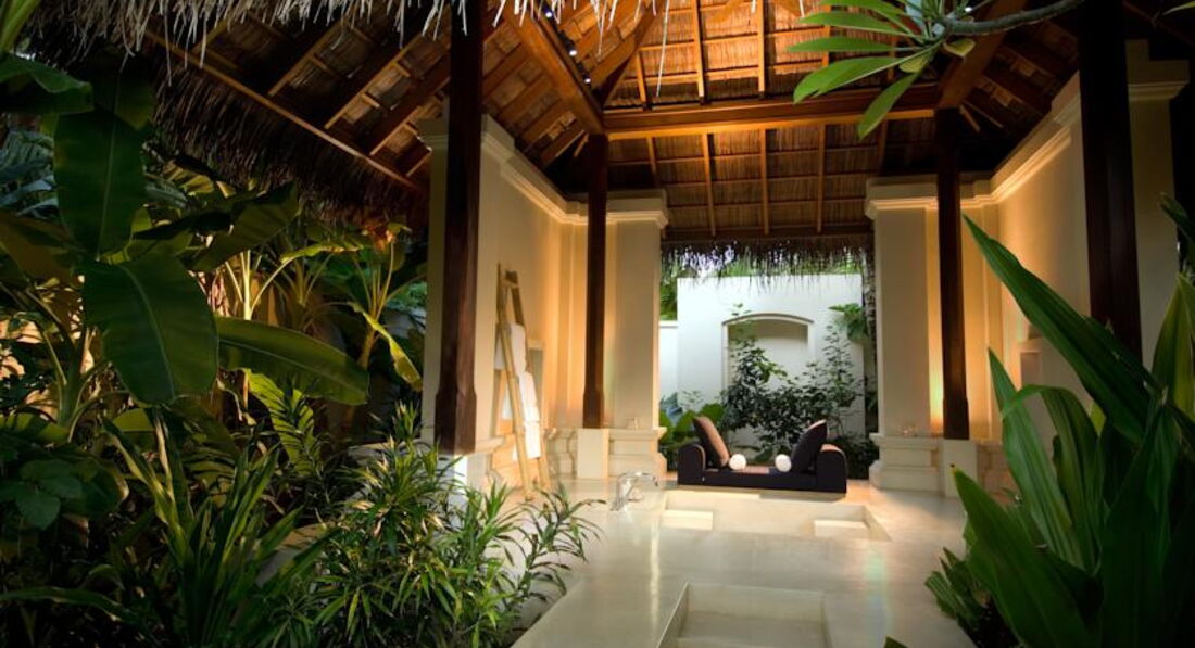 На территории вотер виллы находится грандиозное СПА: отличные виллы с отдельной комнатой для массажа или спальнями (переделали...бирюзовые...) В бунгало кусочек крыши снят для большего света.