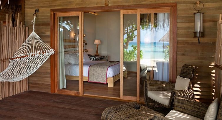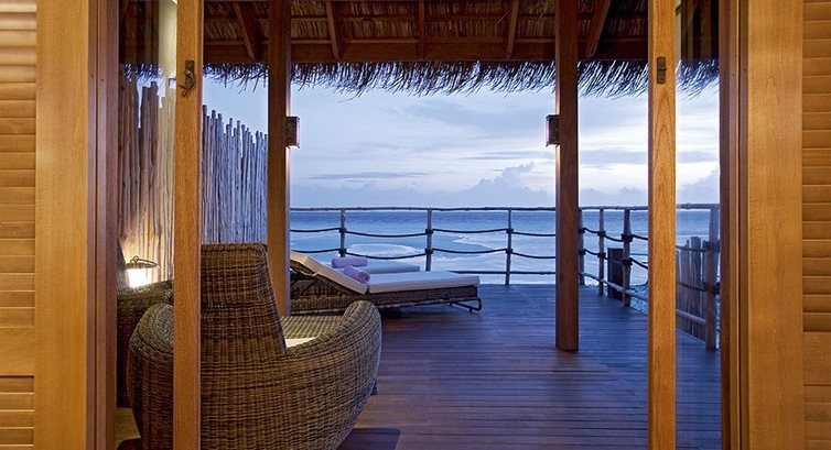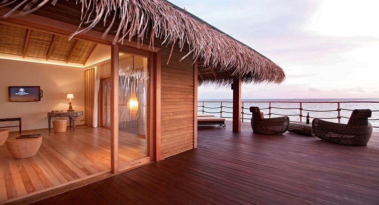 Senior Water Villa (94 кв.м., водні вілли з вітальнею зоною покращеного планування. Гамак на дерев'яній терасі Номери з прямим виходом у море.).