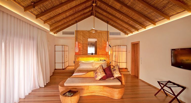 Береговые виллы - уютные отдельные домики, расположенные довольно близко друг от друга (но с соседями мы практически не встречались). Площадь не очень большая, но достаточная. Есть ванная комната с душем на открытом воздухе. Бесплатный интернет, большой телевизор и система для проигрывания CD и DVD (то же и вводных виллах), а так же зарядка для iphone. Бесплатный минибар, который ежедневно пополняется. На мой взгляд, если будет выбор, лучше попросить виллу с 5 по 20. Перед самыми первыми пляж слишком широкий и близко "общественные" лежаки, а в последних пляж узкий.