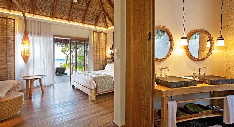 Бронировали отель и перелет самостоятельно в феврале (вышло в 2 раза дешевле, чем покупать в турфирме). По прилету в Мале встретили, быстро перевезли в их лондж (напитки, легкие закуски, фрукты , интернет), гидроплан ждали всего 15 мин , летели до острова 25 мин. Русских в этом отеле всего было три пары. Встретили на высшем уровне (полотенца, приветственный коктейль, в номере бутылка шампанского, фрукты, пироженое-отмечу, что мы не были молодоженами). Номер достался очень хороший(бич вилла N 7). Виллы по размеру не очень большие, но все уютно. В номере: минибар (заполнение отличное-вино, пиво, безалк. напитки, шоколадки,чипсы, орешки, чай,кофе-все престижных марок)- мы даже в течение дня в бар не ходили; халаты -по 2 на каждого, тапки, сланцы, спасательные жилеты; в ванной все необходимое (шампуни хорошего качества). Уборка номера на отлично, а когда оставляли чаевые еще и минибар удваивали. В номер ежедневно приносили после обеда фрукты и пироженое, вроде полдника. В первый вечер украсили кровать и положили два кольца как молодоженам ( я думаю перепутали, но нам очень было приятно, особенно впечатлило 5 летнюю дочку). В ресторане питание просто замечательное ( всегда все свежее, вкусно приготовлено), морепродукты, рыба, мясо, сыры и т.д.(лобстеры за отдельную плату). Единственное не было супа на обед ( но я думаю это не так актуально кто без детей), но на ужин он был. Вино отличное (сомелье предлагает разные виды), было очень много разнообразных, в т.ч. экзотических фруктов , клубника в шоколаде и т. д. В барах готовили замечательные коктейли, каждый вечер в баре у ресторана диско ( так что есть где вечером потусить). Теперь о море- здесь все замечательно, купались прямо у виллы (дочка не выходила из воды, так что моей на Мальдивах было не скучно, хотя ни миниклуба, ни детской площадки в этом отеле нет). У берега плавают акулята,