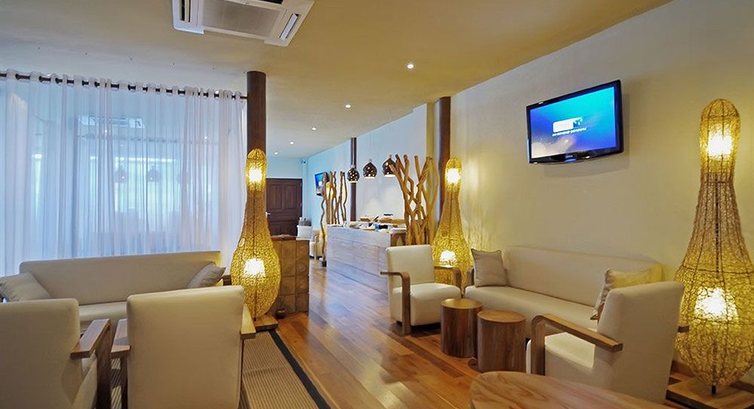 Летели Аэрофлотом. Рейс задержался на 3.5 часа. После прилета в Мале на минибасе нас перевезли в лонж отеля для ожидания трансфера на гидросамолете. В лонже - кондиционер, компьютеры с бесплатным Wi-Fi, бесплатные закуски и напитки. Там же заполняется необходимая для регистрации в отеле документация (и вы уже знаете номер вашей виллы), что очень удобно, так как непосредственно в гостинице больше никаких формальностей не требуется.