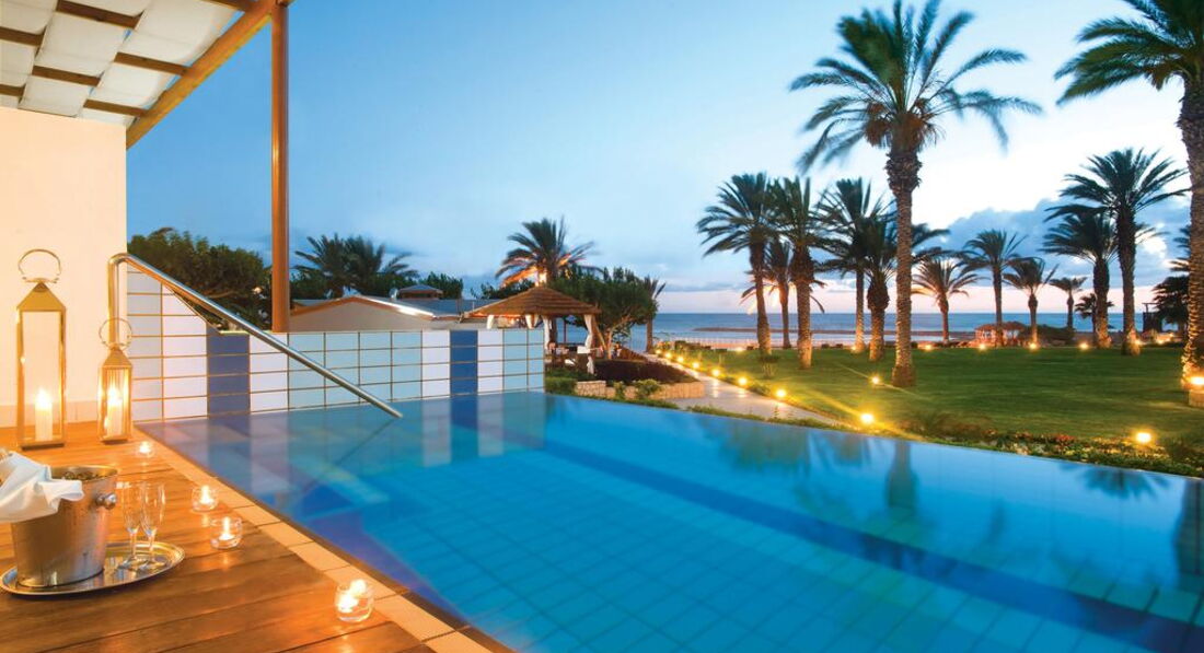 12 Executive One Bedroom Suite with private pool and jacuzzi | (48 кв.м, макс. 3 чол) з видом на сад або видом на море, деякі – з окремим виходом (у сад або до моря); паркетна підлога на терасі, власний басейн 6,6 х3, 0 м. |