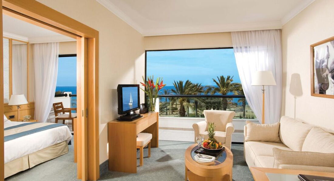 70 One Bedroom Suite (38 кв. м, макс. 3 особи) з видом на ландшафт, з прямим або обмеженим видом на море або видом на басейн і обмеженим видом на море, складаються з 2 кімнат – вітальні та спальні. |