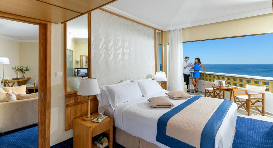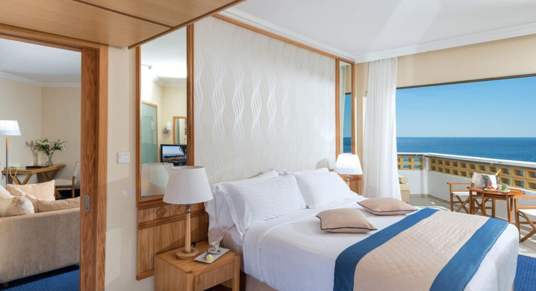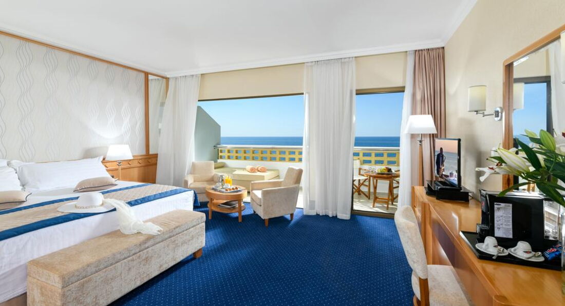 • Junior Suite Sea View (макс. 2 особи, 35 м2) – однокімнатний номер, ванна кімната, балкон з видом на море. Гості даних номерів мають додаткові привілеї, а також користуються пляжними альтанками.