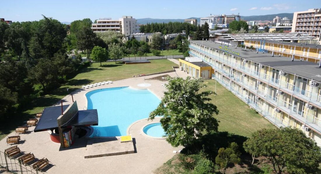 Бюджетний готель Continental Happy Land 1* знаходиться у південній частині курорту. Це колишня дитяча база, що знаходиться під власником Nimfa-Rusalka 2*. Навколо готелю безліч магазинів, кафе, барів. Курортний міні-поїзд, на якому можна дістатися будь-якої точки курорту, зупиняється недалеко від готелю. Номери, як і сам готель, дуже скромні, але мають все необхідне для ночівлі. Корпус 3-х поверховий, ліфта немає. Можна пропонувати для молоді та активним туристам, які проводитимуть мінімум часу.