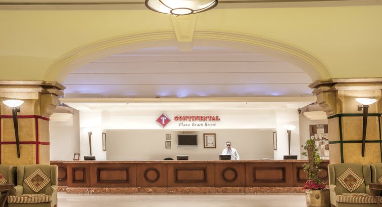 Отмечала с мужем и друзьями в феврале 2014 юбилей.Ехали в другой отель, но Джойн Ап подготовил сюрприз и после долгих препирательств в аэропорту с встречающей стороной (теперь уже у Джойна другие партнеры!) привезли нас в Континенталь Плаза.Еще полтора часа препирательств на ресепшене с выбиванием бонусов - и оп ля ! Два номера рядом, с видом на море, бесплатное мото-сафари и бесплатный хамам в городе, а так же хамам в отеле.Да, отель состоит как бы из 2-х линий : первая - между ресепнен и морем, вторая - между ресепшен и въездом в отель. На второй аквапарк и бассейн с баром. Но так как жили на первой - ни тем бассейном ни баром не пользовались. Сходили только разок в аквапарк и в Аля Карт. Мясо на гриле - не плохо. Говорят на второй линии поубитее номера. На первой - нормальные.Первое в впечатление от обеда- муравейник! Но, это отель к которому нужно подстроиться.Именно так, не он под тебя, а ты под него!Грамотное планирование( в нашей компании был такой организатор) - и никаких стояний в очередях ( которые присутствовали в ресторане постоянно), всегда чистые столы и обилие вкусной еды, если приходить к началу.Это напрягает только поначалу. Потом - веселит. Зато оформление блюд на раздаче заставляет снять шляпу перед шеф-поваром!Очень красиво! Из напитков хорошо шла текила. Стеклянные стаканы для нас были всегда. Кофе отличный зерновой в баре в лобби ( но нужно обязательно сказать что натуральный, иначе нальют растворимый)В номерах все работало и было всегда чисто. Территория отеля восхитительна, особенно променад к Континенталь Гарден.Все цветет.Ездим в основном зимой, но такой шикарной погоды и такого теплого моря еще не попадалось,За 14 дней ни разу не одевались тепло вечерами. Полное отсутствие волн, коралл восхитителен, но нужно плыть и в ластах направо в сторону Хаята - там восхитительные сады! Рыбы всевозможные.Пляж отличный, песок, есть заход для детей. Но из-за плохой организации отелем процесса принятия пищи и не адаптированности ее для детей, а так же некоторого аскетизма номеров - наверное с детьми не советовала бы.Хотя есть даже небольшой аквапарк. А с веселой компанией - самое то. Бар на пляже, конечно, очередной повод для веселья! Картошка фри в количестве 10 порций и пиво, которое действительно всегда заканчивается не успев начаться.Потенциал у отеля огромный, будем надеяться, что время закрытия отеля послужит ему на благо. Потому что даже постоянное присутствие генерального менеджера в отеле влияло лишь на улучшение обслуживание самого мистера Гамаля, а не отдыхающих.Тем не менее отдохнули на 5 благодаря отличной компании и миллиону поводов для веселья: минусы переводим в плюсы!