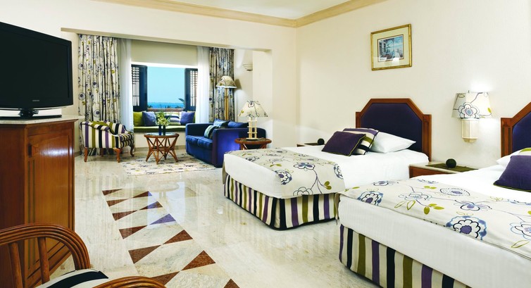 Неплохая средняя пятерочка. И основной минус которой это питание. Питание слабое. Есть 1 главный ресторан и 2 аля карт. 3 бара лобби бар у бассейна и на пляже. Завтраки: В принципе неплохо. Холодное и горячее молоко. Пять видов разных хлопьев. Тосты, небольшая салатная стоечка. Сырные колбасные нарезки, вареные яйца. При вас готовят блинчики. Вкусные котлетки тушеные овощи. Большое количество различных приправ. Небольшая стойка с хлебом. Не слишком большой но неплохой выбор выпечки. Сыр фета, свежие порезанные овощи. Есть молочная каша и несколько египетских блюд из бобовых. Немного фруктов. Обед: Слабенький. Курятина, рыба пицца. Разные гарниры. Опять же мало фруктов. Пара видов каши суп. В общем с голоду не умирали но разнообразия не хватало. Есть хороший ресторан итальянской кухни но он вообще за отдельную плату. Но там действительно вкусно. Обслуживание неплохое. Русскоговорящий персонал на ресепшене который всегда во всем поможет. Средние номера. Старая мебель некоторые номера требуют ремонта. Мы посмотрели разные даже хотели заплатить за улучшеный но посмотрев его передумали. Вообще в отеле 7 категорий номеров. Есть номера с кухней. Двух комнатные номера. В номере мини бар платный. Электронный сейф бесплатно. Кровати с хорошими очень удобными высокими матрасами. Есть чайник и чайно кофейный набор. Современный довольно большой телевизор. Есть услуга Room Service (платно). В номере тапочки халаты. Шкаф с подсветкой. Принадлежности для ванной комнаты. Мыло, гель, лосьон, мочалки, кондер для волос. Бритва. Есть достаточно большой балкон. Территория компактная все удобно расположенно. Один довольно большой бассейн. Довольно большая детская секция. Есть бар в воде. 1 детская горка. Детский клуб с детской площадкой. Неплохие детские аниматоры. Анимация довольно спокойная. Неплохие вечерние шоу. Фитнес центр платно, настольный теннис платно, бильярд платно. У пляжа есть зона с пальмами и травкой. На пальмах закреплены гамаки. Там же проводят йогу и гимнастику. Основным развлечением были экскурсии все очень понравились и вышло не дорого. Потому что брали не в отеле а у местного гида и обошлось в трое дешевле. Всем на заметку зовут нашего гида Mido Bikham легко найдете по имени в любом поисковике или в соцсетях очень известный человек. Особенно нас впечатлила экскурсия Луксор-Дендеры-Банановый остров. Обошлось по 60 долларов масса впечатлений от архитектуры классный обед лучше чем кормили в отеле и отличный транспорт. Проходит она по пятницам учитывайте и группа маленькая что тоже очень удобно. Пляж отеля 1 линия. Вход в море хороший. Удобные новые лежаки стоят достаточно далеко друг от друга. Все оборудование на пляже лежаки столики защита от ветра все новое. Много водных развлечений. Можно покатятся на лодке, банане. Есть парасейлинг, водные лыжи. Отель рекомендую для спокойного семейного отдыха.