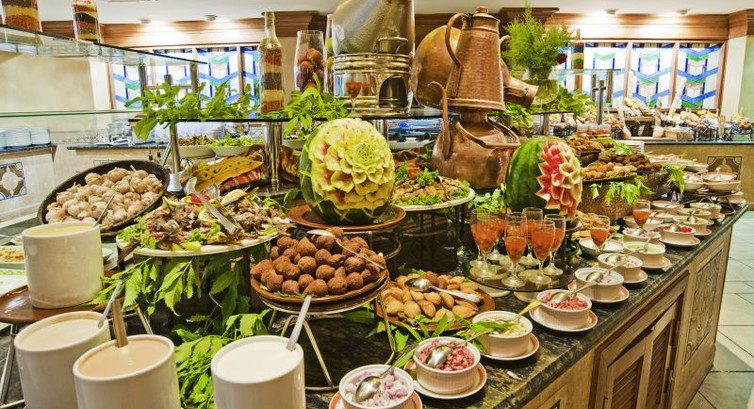 Питались мы в главном ресторане, кормят вкусно. Очень большое разнообразие разных кухонь, есть даже русская. Были в меню и морепродукты. Обеды и ужины очень сытные, так же можно перекусить в баре, там же было и мороженое. Особенно вкусные десерты и различные сладости, были арбузы и дыни, а так же различные свежие фрукты. Алкоголь можно заказать в ресторане или в баре, в наличии есть как местный, так и импортный.
