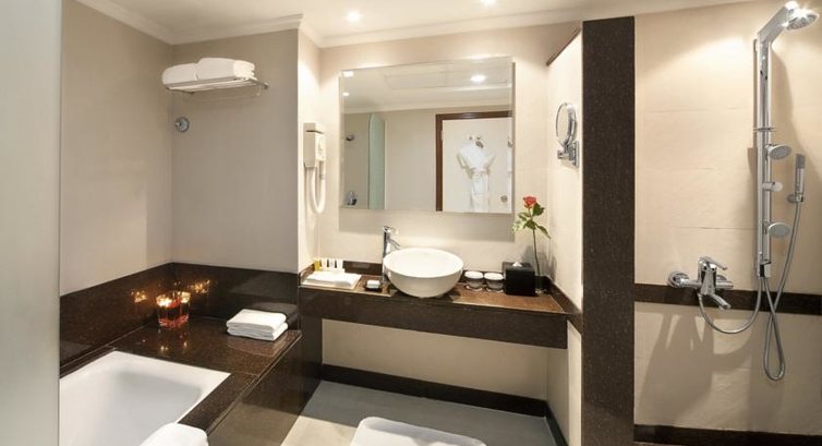У нас был номер Deluxe – все очень достойно и на уровне. Отелю ставлю твердую 5, и своим звездам он соответствует. Мебель в номере новая, все в едином стиле (что не может не радовать глаз). Ванная комната очень чистая…можно наступать даже без тапочек,…на мой взгляд, это наивысшая оценка для ванной комнаты =))
