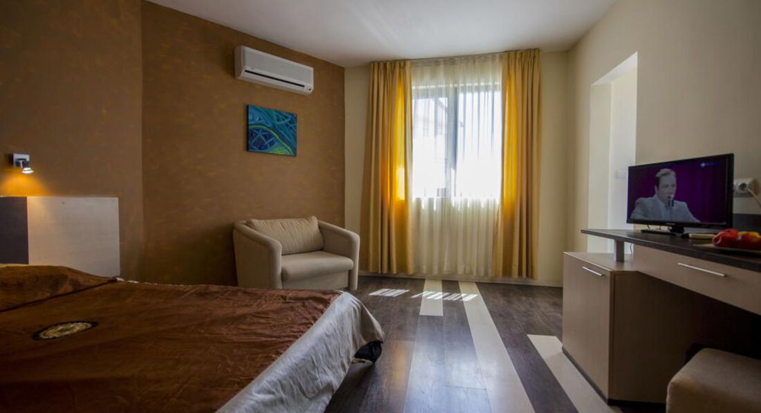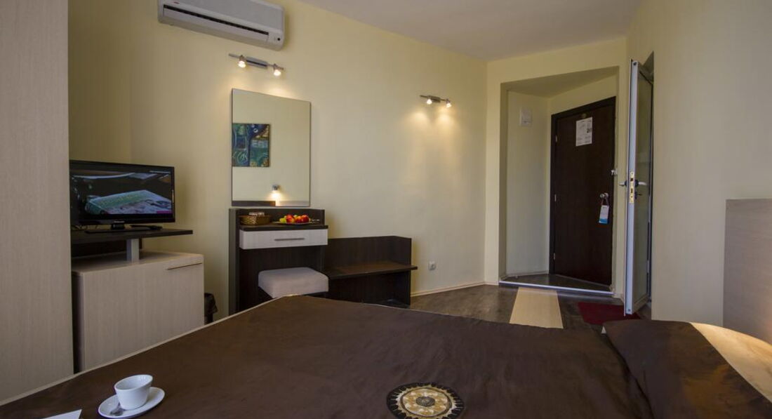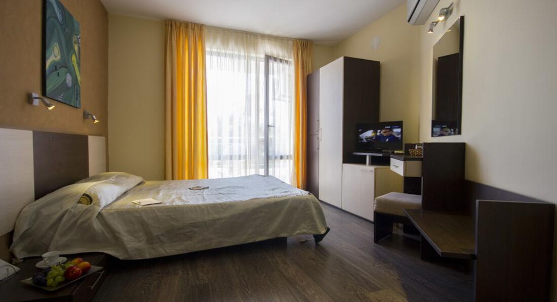 • кондиціонер • супутникове TV • санвузол з душем • фен (на рецепції) • балкон • підлога – ламінат • прибирання номера – щодня • зміна постелі – 3 рази на тиждень • зміна рушників – 3 рази на тиждень Територія та послуги: • сейф на рецепції за дод. плату • обмін валюти • лобі-бар • зал для сніданку • пральня (за дод. Оплату) Дозволено проживання з домашніми улюбленцями (безкоштовно, тільки поза високим сезоном) Розваги та спорт: • масаж • пішохідні прогулянки • рибна ловля Для дітей: • дитяче ліжечко • дитячий стільчик для годування • дитячий майданчик Живлення: Сніданок – шведський стіл. Пляж: Суспільний піщаний; парасольки, шезлонги – платно.