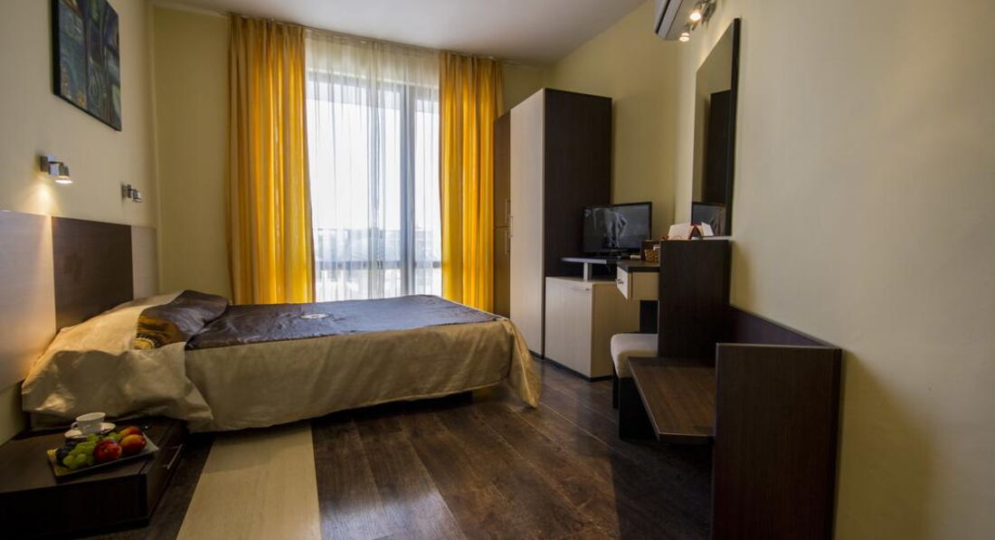 Типи номерів: 10 номерів на двох (макс. 2 особи, 14-15 m²) 3 апартаменти з 1-ї спальні (макс. 2+2 чол., 29 m²)У номері: