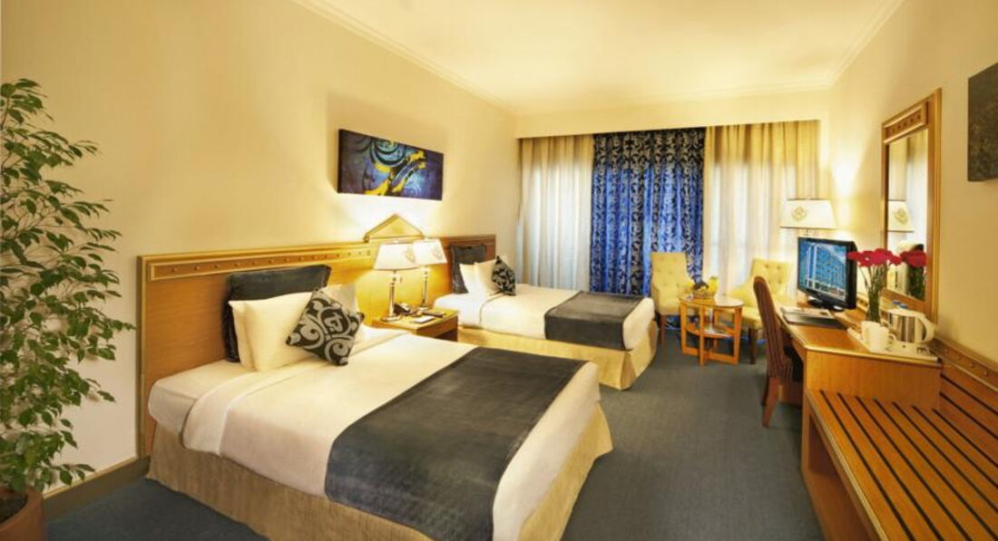 В ОАЭ первый раз. Сразу скажу, что отель особенно не выбирали, отзывы не читали, фактически согласились с тем что предложили в тур фирме. Ездили от Coral Trevel, принимающая сторона - desert adventurase. Время от посадки в аэропорту до заселения в отель где то часов 5, сервис принимающей стороны ужасный, я бы сказал точнее -его нет. Так что когда приехали в отель, то были рады что наконец то приехали. В отеле никто не говорит по русски, но всегда можно было как-то объяснится. В целом отель не плохой. Да расположен в бедном квартале, но хдить по улица можно в любое время суток не опасаясь что что- нубудь произойдет. Достаточно близко до метро (10 минут пешком), так что можно попасть куда хочешь, хотя походить пешком тоже очень интересно. Для тех кто приехал в том числе за шубами, - то до планеты меха 15-20 минут пешком. Относительно еды, да однообразно, но в целом на твердую 4-ку. Уборка комнат- ежедневно, особенно вопросов не возникало. Единственное - близко аэропорт, если жить на последних этажах, то слышимость почти 100%.Так что отел не так уж плох, как его описывают, я бы сказал на твердую 4-ку.