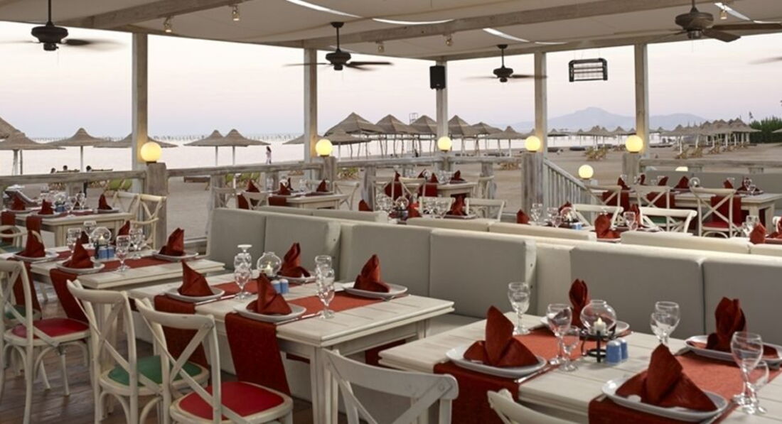 Питание: есть один основной ресторан, второй на пляже - крохотный. На улице в перерывах между обедами и ужинами подают гамбургеры, днем всегда есть мороженое. Еда нам Не очень понравилась. Так как больше половины ресторана занимали: булки, пицца, паста, гамбургеры и остальная вредная и тяжелая еда, которую так любят англичане.