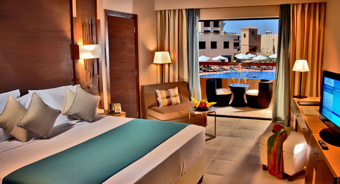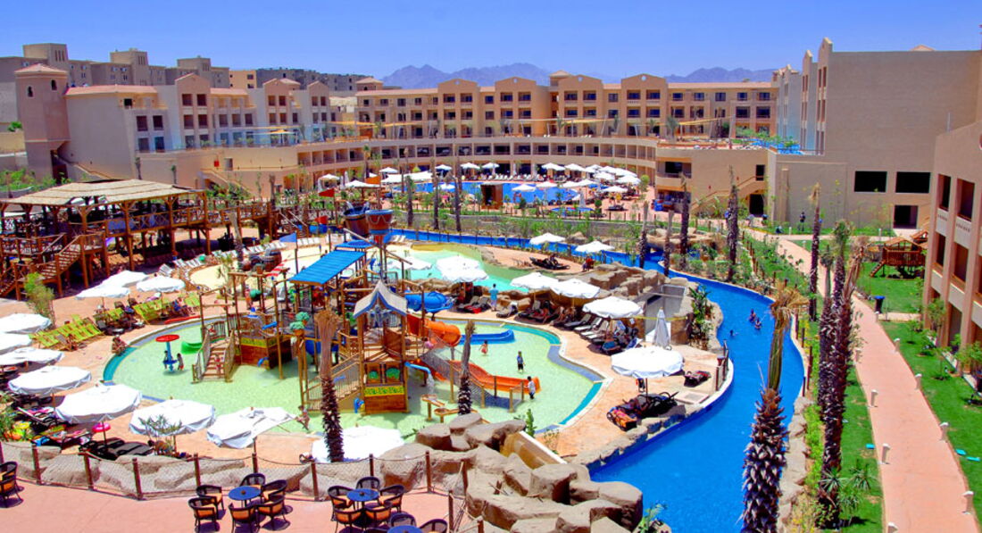 Были с друзьями в апреле. Из хорошего: питание супер, номера хорошие, мало русских, поэтому сервис нормальный. Из плохого; арабы наглые, когда показывают номер, деньги выклянчивают и не уходят, как назойливые мухи, они просто требуют 5$. Когда приносят чемодан, кстати это уже другой человек, такая же история. Поэтому больше 2х долларов не давайте, ссылаясь на отсутствие мелких денег. Вам предложат при заселении номера с выходом в бассейн за 20$, соглашаться не советую, бассейн маленький и там никто не купается, все ходят в большой. Русский хе любят, делают вид. Могут похрюкать, когда вы за пивом к бару подойдете. Не обращайте внимания. Горки классные. В целом, отель не плохой, но мы туда больше не поедем, если только с детьми. Вообще в Египет ради эксперимента поехали, на море посмотреть. Вот это того стоит. Анимации говно полное, там дрыгаются толстые американки, вообще уписаться можно, анимации только в бассейне, никаких динамичных движений и говорят на английском. Кстати, у отеля нет своего пляжа и бара там тоже нет, идти до него километра 1,5. Пляж не очень это мягко говоря, пантон метров 400 и мелко. Лежаки платные на пляже. Ребят, одним словом, делайте выводы