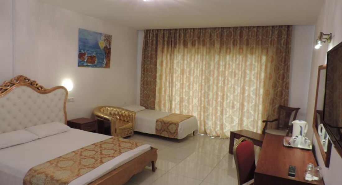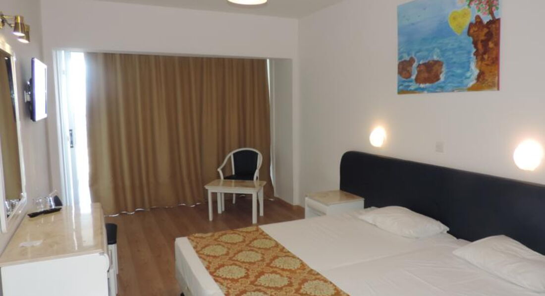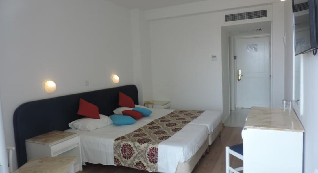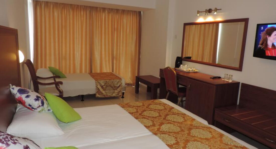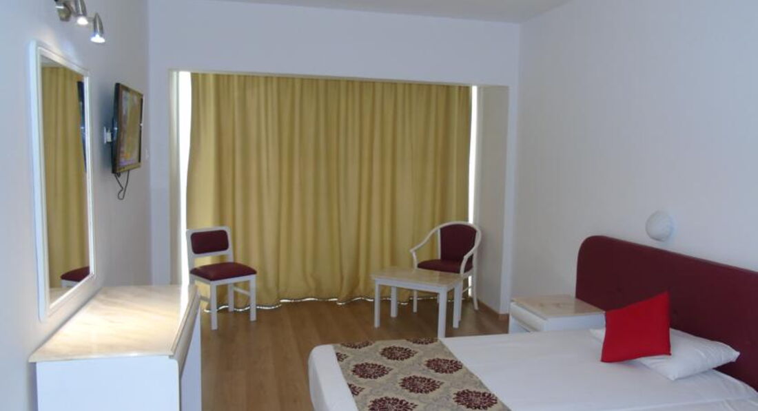 Отдыхали с семьёй в июне 2016. Ездили с Тез Туром, номер был Delux. Приехали поздно вечером, сразу заселили в номер, номер понравился все чисто, для троих места достаточно, большая кровать, мебель, сантехника все новое, ванна с джакузи, все блестит. Номер был с видом на море, но в этом отеле все номера с видом на море. Перед отъездом читали много отзывов было много и хороших и негативных. Мы понимали что едем все таки в 3* поэтому на такой сервис и рассчитывали. Ничего плохого сказать не могу, для семейного отдыха вполне. Единственное что когда поменяли белье был неприятный запах, немного раздражало.
