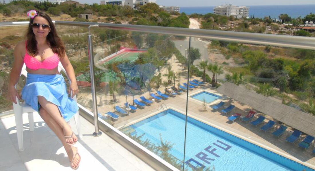 Всем доброго времени суток! Вчера вечером вернулись с мамой с потрясающего отдыха на Кипре и на этих высоких эмоциях спешу написать отзыв, который, надеюсь, многим будет полезен. Итак, полетели мы на неделю в новое для нас обеих место. До этого я была только в Греции, Халкидики в 2011 году и осталась очень довольна отпуском в этой стране. Собственно, поэтому Кипр ( как младший брат Греции) заставил тоже обратить на себя внимание. Летели Уральскими авиалиниями, которые задержали вылет на 3 часа. Собственно, минусы на этом заканчиваются в данной истории. В аэропорту нас встретила прекрасная девушка-представитель компании Attica Holidays и посадив на трансфер от души пожелала нам прекрасного отдыха немного рассказав о самой стране. Доехали до отеля мы за 40 минут. В районе 17ч были в отеле. На ресепшене нам и еще двум парам сделали презент-заселили в номера с видом на море! Здесь хочется отдельно рассказать про удачнейшее расположение отеля. Несмотря на то, что находится он на второй линии, если заселяться в номера с видом на море, его реально видно даже лежа на кровати!)Так что утром мы открывали балкон и наслаждались видами. А вечером провожали солнце) Отель располагается немного в отдалении от остальных, на небольшом пригорке, и это дает ему возможность возвышаться над морским Богом. Кроме того, видимо в сезонное время до отеля не так сильно долетают звуки из местных клубов. Далее: до центра Айя-Напы минут 10-15 пешком. До моря-минут 7. Причем, очень приятная дорога, совсем недалеко. Персонал в отеле очень компетентный, чуткий, добрый. Особенно нам понравилась администратор Надежда:) Она очень интересно рассказывала нам о традициях страны, помогала соориентироваться в достопримечательностях ( мы с мамой брали только одну экскурсию "Голубая лагуна", остальное смотрели сами, ездили на 101 автобусе на мыс Греко и в Протарас, а также обошли всю Айя-Напу и нашли крест с храмом, с высоты которых видна вся Аяй-Напа). А еще в отеле потрясающая еда! Каждый раз добавлялись какие-то новые блюда, все свежее, с душой приготовленное. Мне как любителю сладкого было приятно каждый день замечать новые вкуснейшие десерты, всегда было мороженое. В отеле много иностранцев, как и русских впрочем. Все очень доброжелательные и милые. Очень красивая убранная территория у отеля! Иногда мы лежали у бассейна и радовались потрясающим цветам, свисающим над нашими головами. В отеле много кошек! Что, кстати, тоже говорит о том, что В ЭТОМ ДОМЕ живет любовь и добро. Номера чистые, везде евроремонт, красивая сине-белая плитка. Вообщем, мы крайне довольны нашим недельным отдыхом и смело можем поставить Corfu твердую четверку ( а совсем не "3", как его обозначают) и в следующий раз, когда мы приедем на Кипр, мы заселимся именно в этот отель:) Всем большое спасибо!)