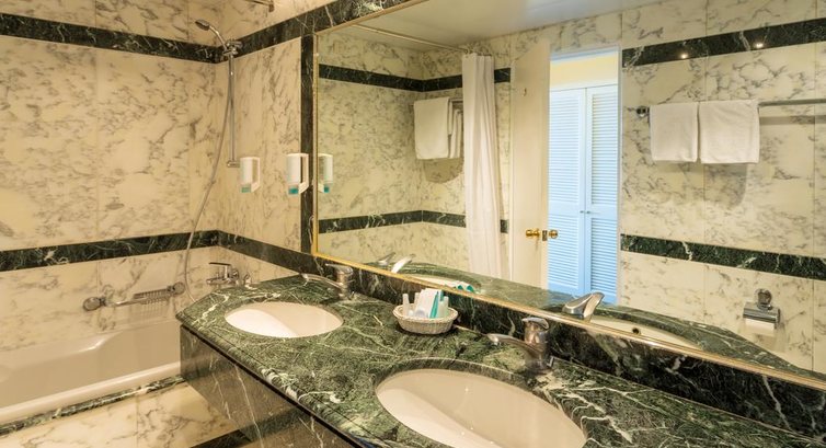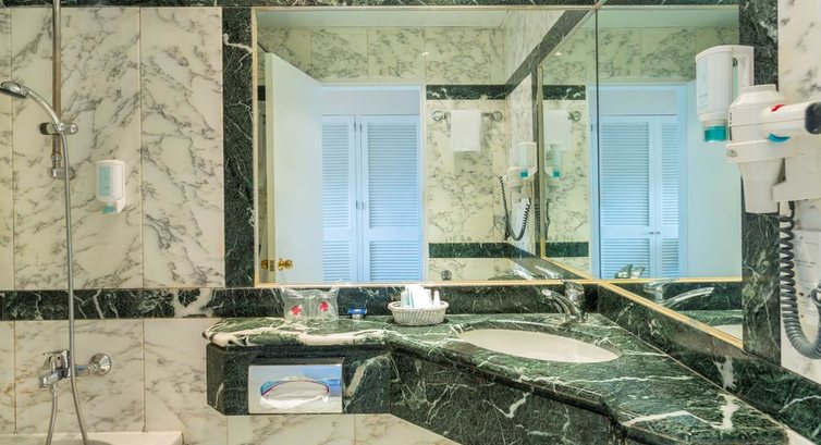 • мармурова ванна кімната з ванною, душовою кабіною, феном та туалетним приладдям