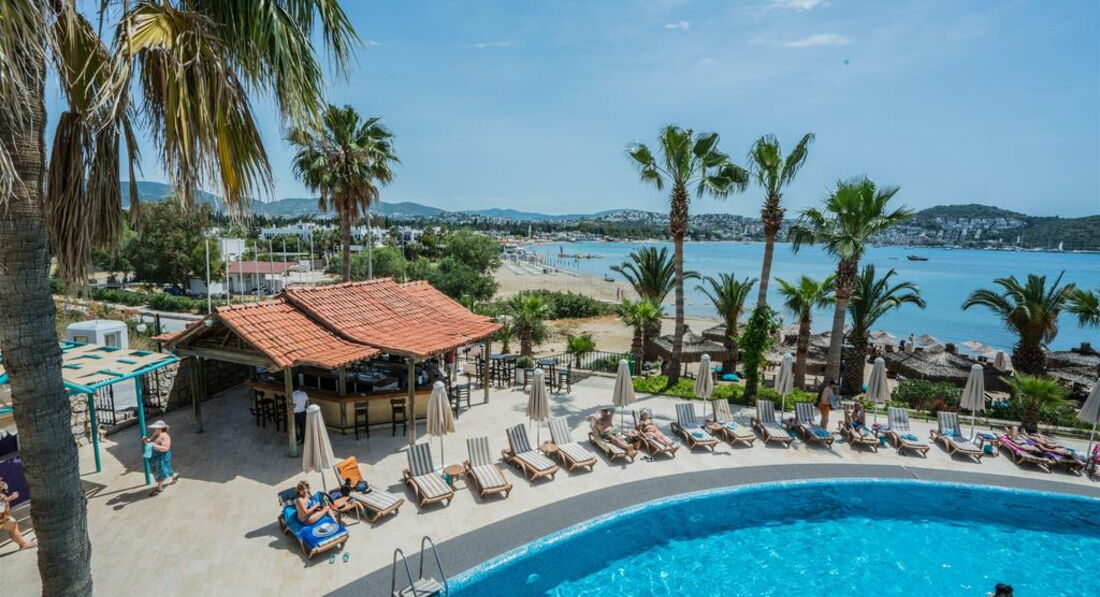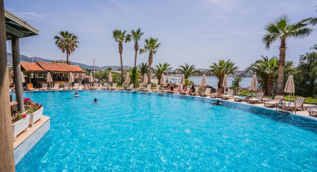Добрый день! За границей бывали много раз, в том числе и в Турции ( в Сиде, Аланье, Анталии, Белеке), решили в Бодрум поехать, отель был рекомендован турагентом у которого мы постоянно приобретаем туры и которая знает наши предпочтения как достойный отель который нас полностью устроит: то есть небольшой отель, все рядом, развлечения для детей! По факту по прибытии описываю: из автобуса ночью кинули с чемоданами внизу, а ресепшен нааерху вгорку тащили чемоданы после перелета с ребенком! У меня в Росии был приобретен sea viey - номер с видом на море Заселили в маленькую комнату троих с двумя маленькими кроватями, у меня комната у ребенка на одного больше, зато с видом на море типа! Питание отстой, готовят одно и тоже каждый день, выбора никакого нет, фрукты все зеленые, напитки все химические либо порошковые либо разбавленные, вода местная воняет, у меня был шок!! Детей кормить вообще нечем, с утра ни омлета, ни каш нет! Море ледяное, спокойно плавать невозможно, но тут лично для меня, кому то нравиться моржевание, детей в море нет! Анимации никакой, детей никто не развлекает, детской дискотеки нет, взрослая только ехать в центр потанцевать и тащиться на автобусе обратно за 20 лир, короче пипец, и самое главное контингент отеля, это что то!!!! Видимо где то выдавали путевки в дурдоме российском, ебнутые на голову через одного, ругаються посылают, плюс украинцы, белоруссы, для меня неприемлемо с ними отдыхать, это вообще что то, шмары и проститутки отдыхающие с местными товарищами, ужасс, это семейный отель! В барах грязь, стаканы не мытые, подают с помадой чужой, тараканы, мухи, муравьи на територрии кухни, повара, бармены все в грязной либо старой одежде, обслуживают турков своих, музыку включают каждый день одну и ту же! Товарищи, я категорически не рекомендую данный отель, так, поверьте мне есть с чем сравнить, и отели не должны так обслуживать людей,!