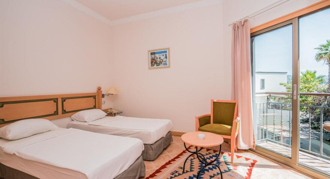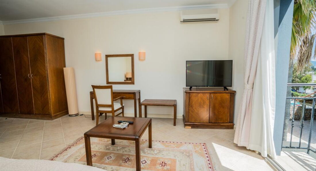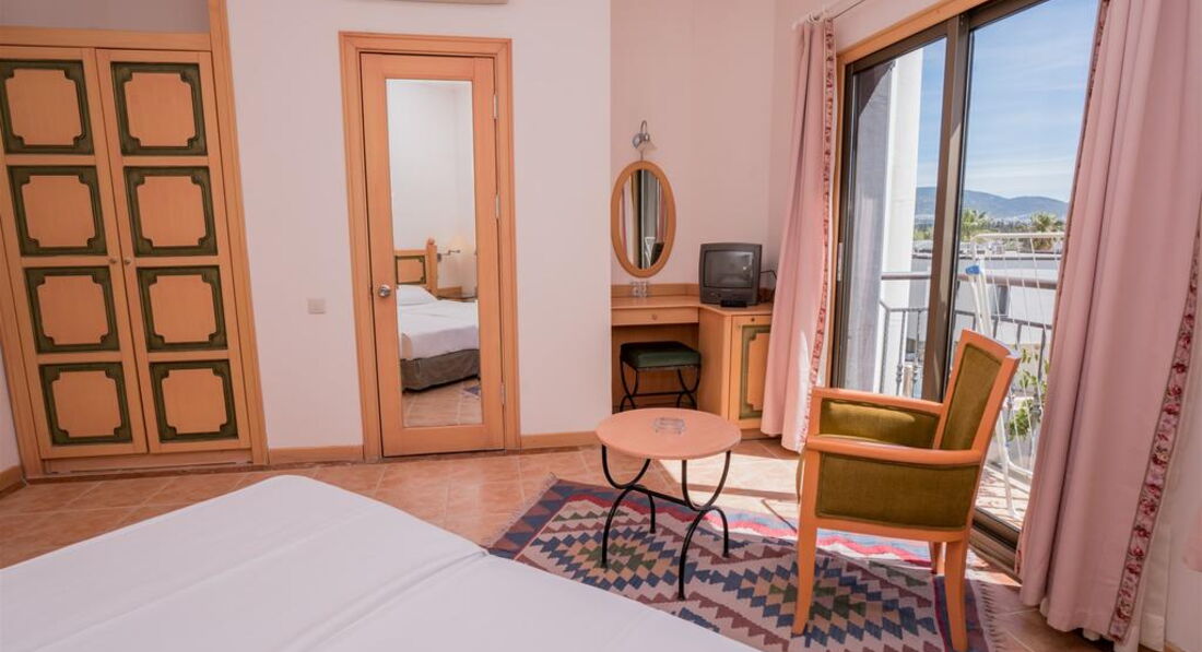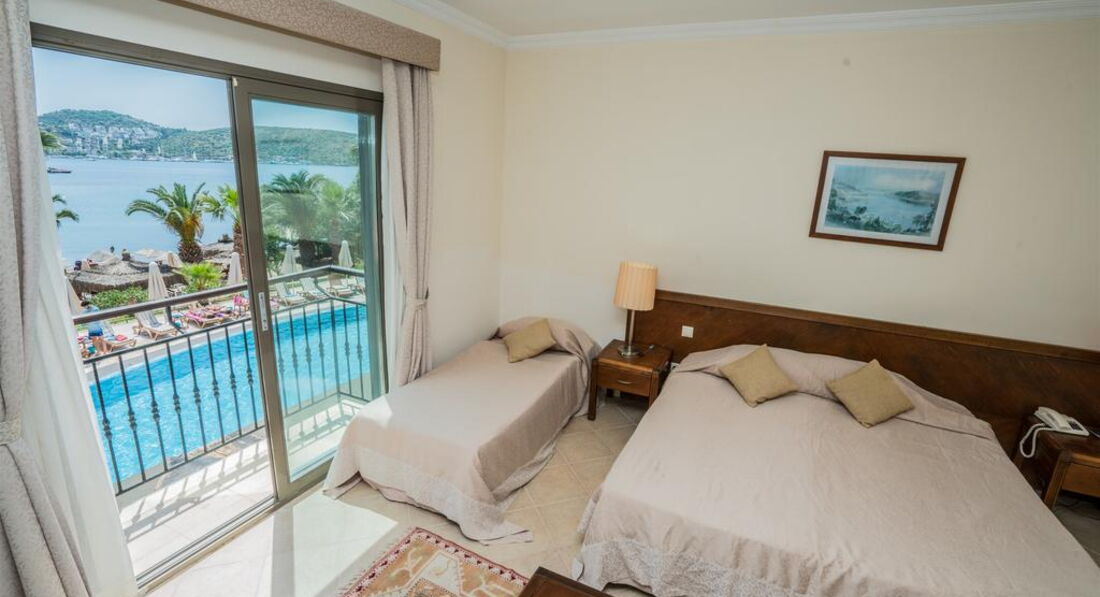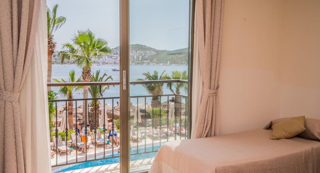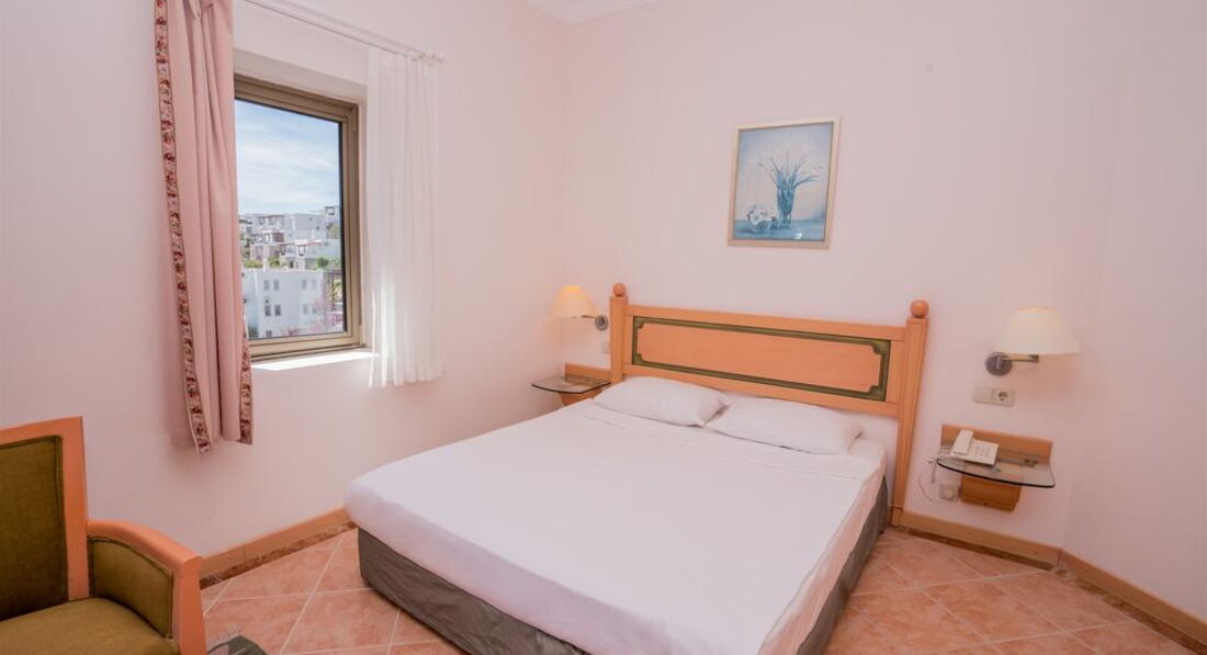 Отдыхал -если это можно назвать отдыхом конечно с 4 июня 2017 - 10 дней. Сразу же огорчило первое впечатление а именно хол отеля - такое ощущение, что приехал в какой то государственный пансионат , стены обдёртые и грязные, но дальше было веселее. Я приобрёл тур со стандартным номером на троих человек в описании указывалось что будет просторный номер с окном и с 1 двухспальной и 1 односпальной кроватью, но когда нас начяли (пытались) заселять я был просто шокирован почти все номера данного отеля находятся на минус первом этаже - то есть в номерах нету даже элементарных окон и комнатушки как у меня кладовка не больше 6 кв/м , мы конечно же начали возмущаться и ссылаться на описание отеля на их сайте, на что они мне ответили у нас с окнами только номера ЛЮКС а то всё чисто для рекламы что б сюда люди ехали. Жаль что на эмоциях не сфотографировал предложенный им номер и не могу выложить фото. Мы с семьёй спорились с ними часа 4 в итоге нас пересилили в другой отель. Мой совет если не хотите получить от отпуска негатив вообще не разсматривайте отдых в Бодруме, т.к. и в другом и в остальных ( как это уже выяснилось в дальнейшем из слов отдыхающих же туристов с которыми мы познакомились) отелях отношение по хамски, весь персонал тебя игнорирует и такое ощущение что не они должны меня обслуживать а я их . Вывод один Бодрум ещё не дорос до обслуживания туристов очень огорчён и не в коем случае не советую отдых именно в этом городе.