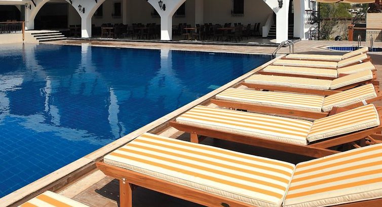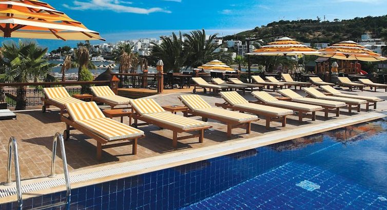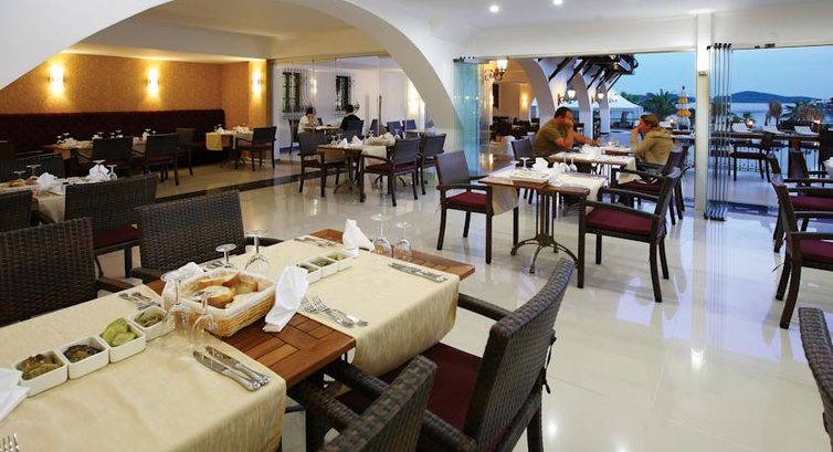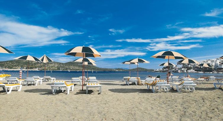 Мы побывали в этом отеле в августе 2011 года, причем когда покупали путевку, нам были показаны фото отеля (как оказалось столетней давности), и сам отель нам показался неплохим и по цене тоже. Главное при выборе отеля для меня служил критерий пляжа (как известно, в Бодруме абсолютно нет песчаных ровных пляжей, да еще и пирсы). Как было обещано (и показано на фото), пляж оказался ровным, с плавным входом в море, но грязи и ила было на самом деле по колено. и чтобы действительно поплавать, нужно заходить в море 1 км вглубь. Шезлонги и матрасы действительно бесплатные, но грязные, как и сам пляж.
