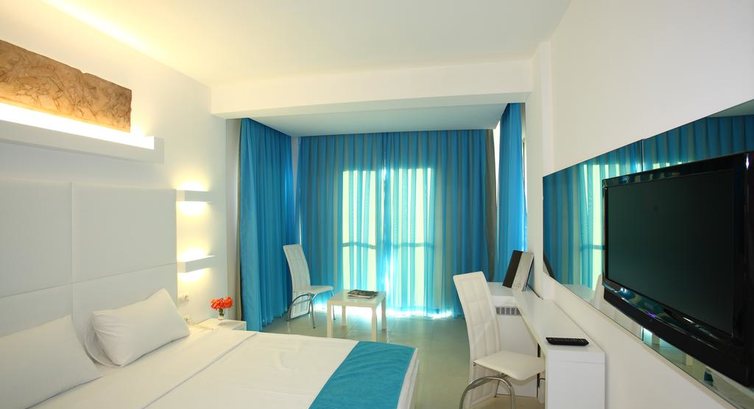 Територія та послуги: • Відкритий басейн (глибина від 85 см до 2 м) • Дитячий басейн (глибина від 20 до 40 см) • У басейну парасольки, шезлонги, матраци: безкоштовно • Ресторани A la carte: 2 • Бари: 1 • Wi-FI безкоштовно (на всій території готелю) • Магазини • Лікар за викликом • Пральня Розваги та спорт: • Водні види спорту платно • Жива музика безкоштовно Для дітей: • Дитячий майданчик • Няня за запитом, платно Живлення: • Все увімкнено (є вегетаріанське меню). Пляж: Власний піщаний пляж обладнаний дерев'яним пірсом. На пляжі шезлонги, матраци, парасольки, рушники безкоштовно. Бар на пляжі: платно.