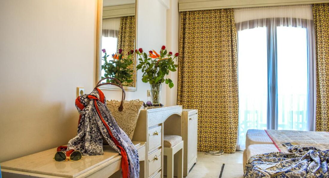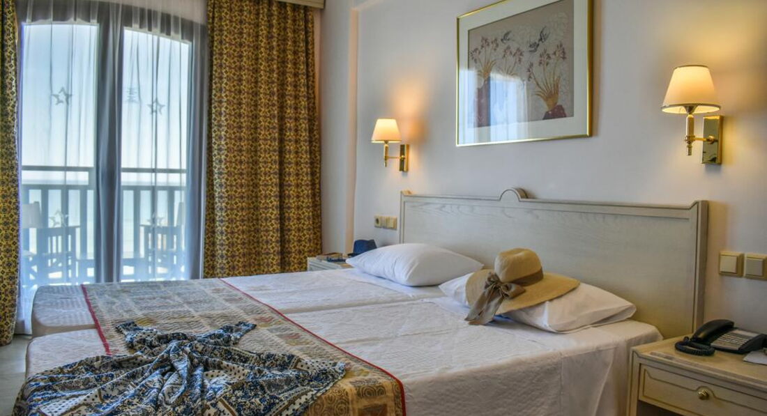 Типи номерів: standard room SV (вид на море, осн. ліжко – двоспальне ліжко або 2 односпальні, дод. – софа, макс. 2 чол., 19 м2), Standard room SSV/mountain view (бічний вид на море або вид на гори, осн. ліжко – двоспальне ліжко або 2 односпальні, дод. – софа, макс. 3 чол., 19 м2), Family room mountain view (вид на гори, однокімнатний номер, осн. ліжко – двоспальне ліжко, дод. – 2 софи, макс. 3+1 чол., 35 м2)У номері: зміна білизни: 3 рази на тиждень банні приналежності кондиціонер: безкоштовно (15/06-15/09) зміна рушників: екосистема ванна прибирання номера: 6 разів на тиждень підлога: керамічна плитка балкон або тераса фен: є ТБ: супутникове Інтернет: Wi-Fi, безкоштовно міні холодильник