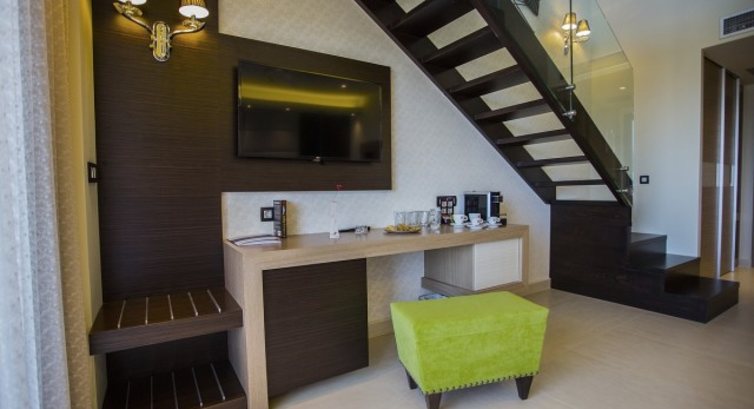 Типи номерів: Executive Suite (31 м2): спальня з двоспальним ліжком та диван-ліжком; максимальне розміщення 3 дор. або 2 дор. та 1 дит. Executive Suite With Private Pool (35,9 м2): спальня з двоспальним ліжком та диван-ліжком, приватний басейн; максимальне розміщення 3 дор. або 2 дор. та 1 дит. Executive Suite 4 Bedded (37,5 м2): спальня з двоспальним ліжком, вітальня з 2 диван-ліжками, 2 ЖК ТБ з плоским екраном 42”, ванна кімната з окремою душовою кабіною та гідромасажем, простора тераса з вітальнею; або 3 дорослих і 1 дит. Executive Family Suite With Private Pool (55,5 м2): спальня з двоспальним ліжком, вітальня з 2 диван-ліжками, 2 ЖК ТБ з плоским екраном 42”, ванна кімната з окремою душовою кабіною та гідромасажем та 2 раковинами, простора тераса з гості , приватний басейн з шезлонгами, максимальне розміщення 4 дорослих або 3 дорослих і 1 дит. Superior Family Suite (55 м2): спальня з двоспальним ліжком, вітальня з 2 диванами-ліжками, 2 ЖК ТБ з плоским екраном 42”, ванна кімната з окремою душовою кабіною та гідромасажем та 2 раковинами, простора тераса з вітальнею; або 3 дорослих і 1 дит. Maisonette With Private Pool (49 м2): спальня з двоспальним ліжком, вітальня з 2 диванами-ліжками, 2 ЖК-ТБ з плоским екраном 42", ванна кімната з окремою душовою кабіною, простора тераса з вітальнею, приватний басейн з шезлонгами; 4 дорослі або 3 дорослі і 1 дитина Dome Suite Private Pool (32 м2): спальня з двоспальним ліжком і диван-ліжком, плазмовий ТБ з плоским екраном 42 ", ванна кімната з окремою душовою кабіною, веранда, приватний басейн; максимальне розміщення 3 дор. або 2 дор. . Executive Suite With 2 Entrances (55 м2): спальня з двоспальним ліжком, вітальня з 2 диван-ліжками, 2 ЖК ТБ з плоским екраном 42", ванна кімната з окремою душовою кабіною, простора тераса з вітальнею, 2 входи; максимальне розміщення 4 дорослих або 3 дорослих і 1 дит.У номері: ванна кімната з окремою душовою кабіною, фен, збільшувальне дзеркало, преміальне косметичне приладдя, халати/ капці, Wi-Fi, плазмовий ТВ з плоским екраном 42", супутникові канали, кондиціювання/ опалення, пряма телефонна лінія, міні-бар з напоями преміум-класу (мінеральна вода щодня), електронний сейф, шафа з дошкою для прасування/ праска, простора веранда