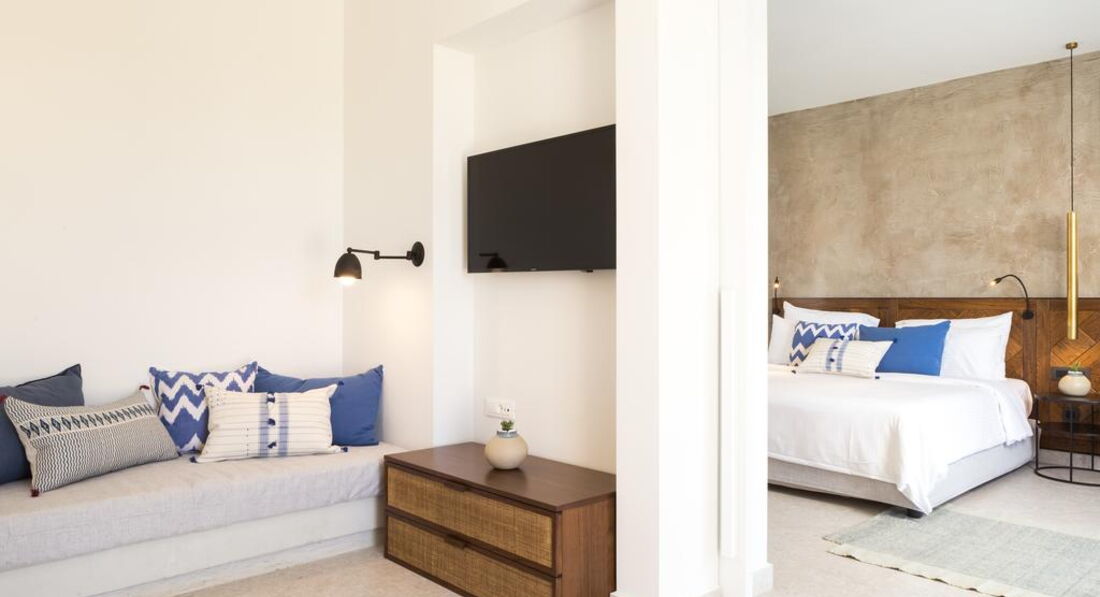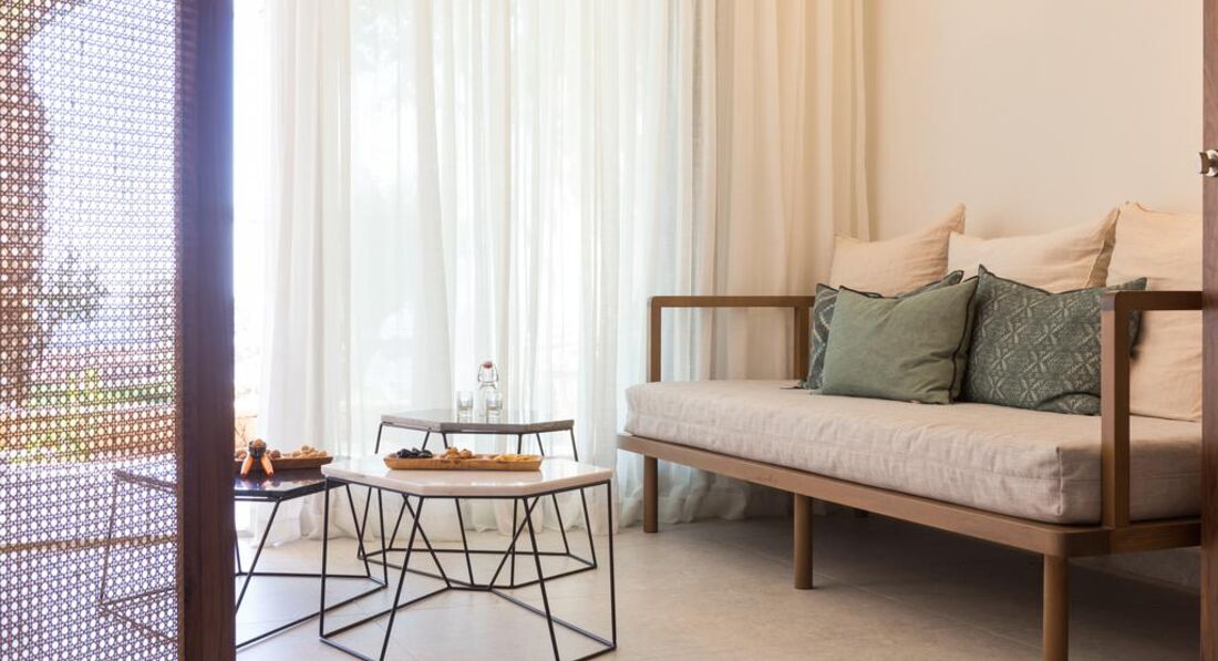 deluxe suite (вид на море, спальня із зоною вітальні, вітальня з розсувними дверима, осн. ліжко – двоспальне, дод. – софа або ліжко, ванна кімната з джакузі, гостьовий туалет, макс. 3+1 чол., 64 м2), є можливість поєднання з Vip junior bungalow suite.