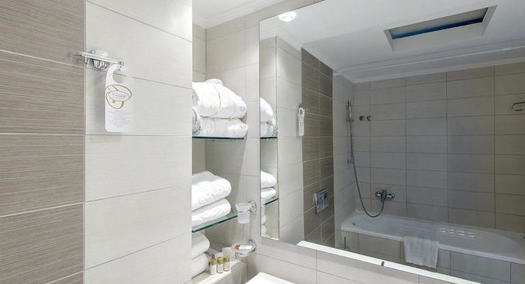 Всього 192 номери: Double Rooms (~24 кв.м), Suites (~50 кв.м), Villas Maisonette (~70-80 кв.м), Presidential Suite (~120 кв.м), Junior Suites (~42 кв.м), Family Suites (~68 кв.м). Типи номерів: Double Room Номери розташовані в головній будівлі з прямим та бічним видом на море та гори. Двоспальне ліжко або два односпальні ліжка, диван, дод. місце – ліжко. Suite Розташовані в головній будівлі готелю на 6-му поверсі. Двокімнатні номери з прямим та бічним видом на море та гори. Двоспальне ліжко, диван-ліжко, міні-кухня, мікрохвильова піч, чайник. Villa Maisonette Розкішні дворівневі вілли з видом на сад. Простора спальня з двоспальним ліжком, окрема вітальня з каміном, сауна, душова кабіна, 2 туалети, чайник, 2 телевізори, тераса з шезлонгами, приватний лужок. Junior Suite Номери розташовані у головній будівлі. Двокімнатні номери, вітальня з 2-ма диванами, окрема спальня з двоспальним ліжком, міні-бар (щодня поповнюється), електрочайник, душова кабіна. Family Suite 3 кімнати. Розташовані у центральній будівлі. Вітальня з 2-ма диванами, спальня з двоспальним ліжком та спальня з 2-ма односпальними ліжками, кухонний куточок (мікрохвильова піч, електрочайник), 2 ванні кімнати (душ), міні-бар (поповнюється щодня). Presidential Suite Трикімнатний номер розташований у головній будівлі готелю, з вікон відкривається вид на море та гору Олімп. Спальня з ванною та панорамним вікном з видом на гори, вітальня, приватна тераса на даху з шезлонгами та столиком, душ, спальня, міні-кухня.У номері: Балкон/тераса Ванна/душ Кондиціонер Міні-бар Російський канал Супутникове ТВ ТБ Телефон Фен
