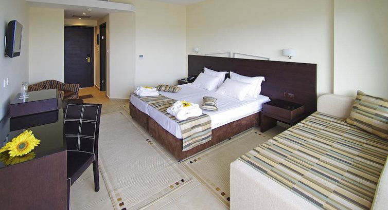 Розкішний готель розташований прямо на березі моря. Приватний піщаний пляж, вибір комфортабельних номерів, сюїт та вілл, ресторан, таверна, бари, парк водних атракціонів Splash Park з басейнами різного рівня глибини, спа-центр, інтернет, спорт та розваги. Сімейний курорт пл. близько 6 га на золотому узбережжі.