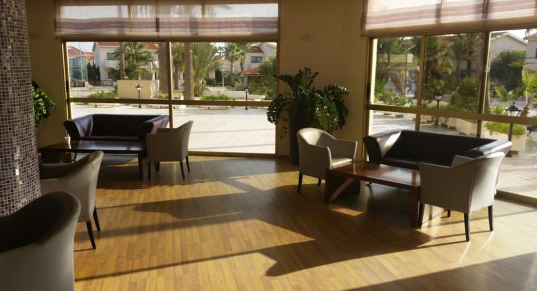 Отдыхали в отеле в июле 2016 г. семьей 2 взр. + 2 детей (13 лет и 4 года).На Кипре были первый раз, отель выбирали недорогой. О том, что он нам очень понравился, говорит то, что едем в него снова в сентябре! 1) Территория отеля не очень большая, но очень продуманная, есть 2 бассейна. Около одного бассейна лежаки и кресла со столиками находятся под тенью деревьев. Детский городок небольшой, просто пластиковый комплекс с горкой. Но, после 10 поездок в Турцию в отели с огромной территорией, где куча детей, мы были счастливо спокойны в этом отеле - детей не много, концентрация народа в целом также невелика. Единственный минус нашей поездки - это дикая жара в июле: днем было невозможно жарко. На территории отеля был теннисный корт (на ресепшене бесплатно брали ракетки и мячи), но из-за жары не удалось поиграть. 2) Пляж очень близко, через дорогу, вход в море - мелкая галька, а в самом море песочек. Довольно долго мелко, что очень классно для детей. Также плюс в том, что совсем не было волн (например, на Крите волны нам не давали поплавать, все время красный флаг). На пляже народу немного, например, мы расположились, следующие в метрах 5 от нас. 3) Питание. Оно было довольно скудное, но при этом все необходимое есть: и рыба, и мясо и овощи. Для меня такое питание - это огромный плюс, потому что, когда оно более обильное, не получается не переесть, потому что хочется все попробовать. А здесь у нас было хорошее здоровое питание без обжорств. И для детей это "плюс" - в Турции этот огромный выбор булок, тортов, сладостей - это зло)) 4) Номер. Нам повезло, досталось бунгало, в котором было 2 комнаты на 2х этажах. Все чистое, свежее, ни в одном отеле в Турции при стоимости путевки 200 тыс. у нас такого не было. Обычные номера в отеле попроще, но тоже вполне отличные, не придраться. 5) Из экскурсий были на "Веселой рыбалке" - супер, и нам, и детям понравилось. В Джамбо ходили раза 3-4)) пешком минут 30, на автобусе пара остановок от отеля. Это гипермаркет игрушек, товаров для дома, летней одежды.