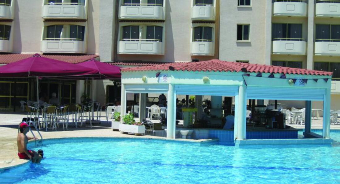 Только вернулись из поездки на Кипр. Хочу рассказать о нашем отдыхе. В отель нас привезли в 4.30 утра. На ресепшн никого,только дедушка,который ,наверно,исполняет обязанности сторожа. В холле духота страшная-кондиционер не работает.Кто успел,занял диван,чтобы поспать.Остальным достались кресла. Когда немного рассвело,перебрались на лежаки у бассейна.Завтрак с 7 часов. Мы были без браслетов,но позавтракали спокойно. Потом пошли на море. Море очень близко-это плюс. Очень чистое! Вход в воду по гальке,но ее очень мало,буквально метр,а потом песок.Есть платные лежаки,но мы ими не пользовались,размещались на своих полотенцах.Заселили в 14.00. Номер плохо убран! На полу в ванной комнате столько волос,что дурно стало. Пыль везде! Позже уборки не было ни разу. Только выносили мусор. Полотенца за 7дней так и не поменяли,хотя даже на ресепшн сделали заявку. Кормили нормально. Разнообразия не было,но подобрать для себя всегда можно было. Мясо разных видов. Картофель,макароны. Каждый день был арбуз,дыня,сливы,правда неспелые,яблоки,персики. До обеда и после около бассейна выносили жареную рыбку,картофель фри,мороженое. В бассейне очень!много хлорки. И еще! Вокруг бассейна растут деревья. Тенек. Но!! С этих деревьев сыпятся мелкие муравьи,который очень больно кусаю. Место укуса долго болит,ощущение,что тело колют тонкой иголкой. А в бассейне с хлоркой начинало болеть еще больше. Хорошо ,что с собой привезли перекись,потом носили ее с собой. Анимации нет. Поэтому вечером после ужина народ просто сидит пьет сок,пиво.Толпа около бара . Можно поехать в Ларнаку,но последний автобус уходит в20.30 .На него лучше не опаздывать,т.к. такси очень дорогое. Я всем желаю хорошего отдыха.