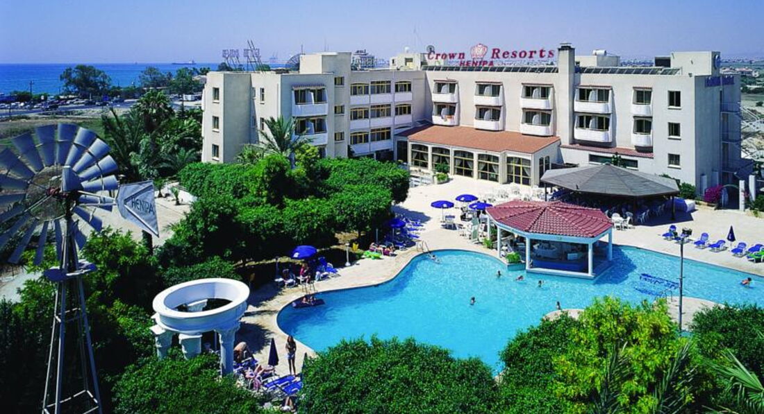Отдыхали на Кипре не впервые. Но именно Ларнаку для отдыха выбрали первый раз. Туроператор ТПГ. Менеджер предложила несколько недорогих вариантов, из которых самым оптимальным по соотношению цена-качество нам показался отель Crown Resorts Henipa. Впечатления хорошие, отель за свою стоимость вполне нормальный. Долетели мы с комфортом, к отелю добрались быстро. Менеджер ТПГ весь отдых была с нами на связи и интересовалась отдыхом, за что ей отдельное спасибо! Встретили гостеприимно нас сотрудники рецепции, заселили сразу. Номер дали с видом на бассейн. В целом, довольно неплохой, нормально обставленный номер. Кровать с удобным матрасом, тумбочки, стол, стулья, тв, кондиционер, фен, балкон с мебелью, ванная комната с хорошей сантехникой. Вообщем, нас все устроило. Уборка ежедневная. Вай фай платный. У отеля большая и красивая территория. 2 бассейна, лежаки, мостик. Хороший бар. Анимации нет. Пляж рядом есть песчано-галечный с платными лежаками, чуть дальше - песчаный. Но, нам больше понравилось ездить на пляж в Ларнаку. Добраться до Ларнаки или Айя-Напы легко, автобусная остановка рядом. Питание - стандартные завтраки без разнообразия - омлет, яйца, сыр-колбаса, кекс, хлопья, овощи, фрукты, напитки. Обед и ужин - мясо, гарниры, рыба иногда, фрукты, мороженное. Перекусить можно в кафе у бассейна. Конечно, отель не идеален и определённые минусы здесь имеются, но на это отдыхать не мешало и мы прекрасно провели время и замечательно отдохнули. Спасибо за отдых! Отель рекомендую!