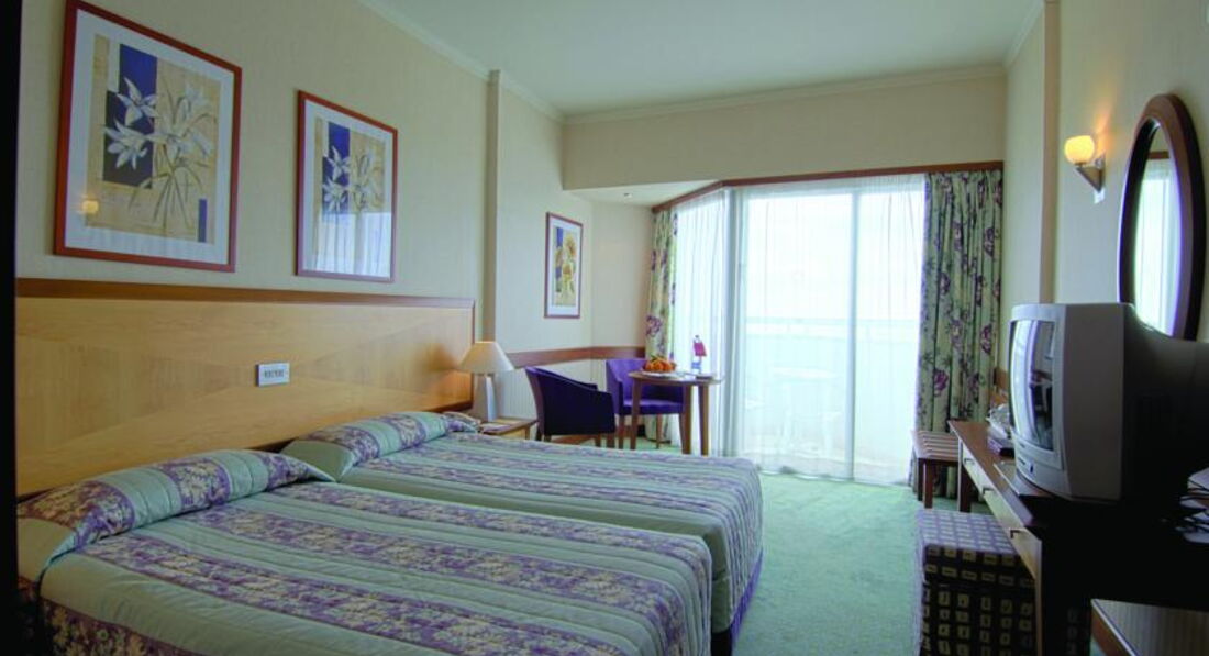 Вообще, персонал в отеле замечательный, дружелюбный, отношение что к иностранцам, что к русским – одинаково вежливое. Мой английский был конечно очень кстати как в отеле, так и на Кипре в целом, но даже не владея языком, вы будете поняты и обслужены на отлично. Много персонала из дружественных стран СНГ, а также румыны, болгары. Нам достались два номера в разных корпусах (на утро по нашей просьбе быстро и без доплат поменяли на соседние). Кстати номер с категорией - вид на горы оказался просто шикарным (и море и горы и территория внутреннего дворика отеля ) и тишина, что немаловажно ( чем я думаю не могли похвастаться обладатели номеров с видом на море и бассейн). Номер вполне достойный, не маленький, уютный, с балконом. Холодильником не пользовались (но его подключают, если ты что- нибудь купил в баре отеля), сейфом тоже ( могу сказать, что абсолютно безопасно, хоть на видном месте деньги оставляй - никаких пререканий).ТВ – 2 русских канала ( ТВ мы не смотрели вообще, думаю не за тем на отдых едем), кондиционер отличный. Шампуни, гели берите с собой, в ванной только жидкое мыло, тапочек и халатов нет. Но при отеле 4* и данной категории номера мы и не ждали большего. Уборка ежедневная, качественная, женщины - грузинки в основном, большие молодцы.
