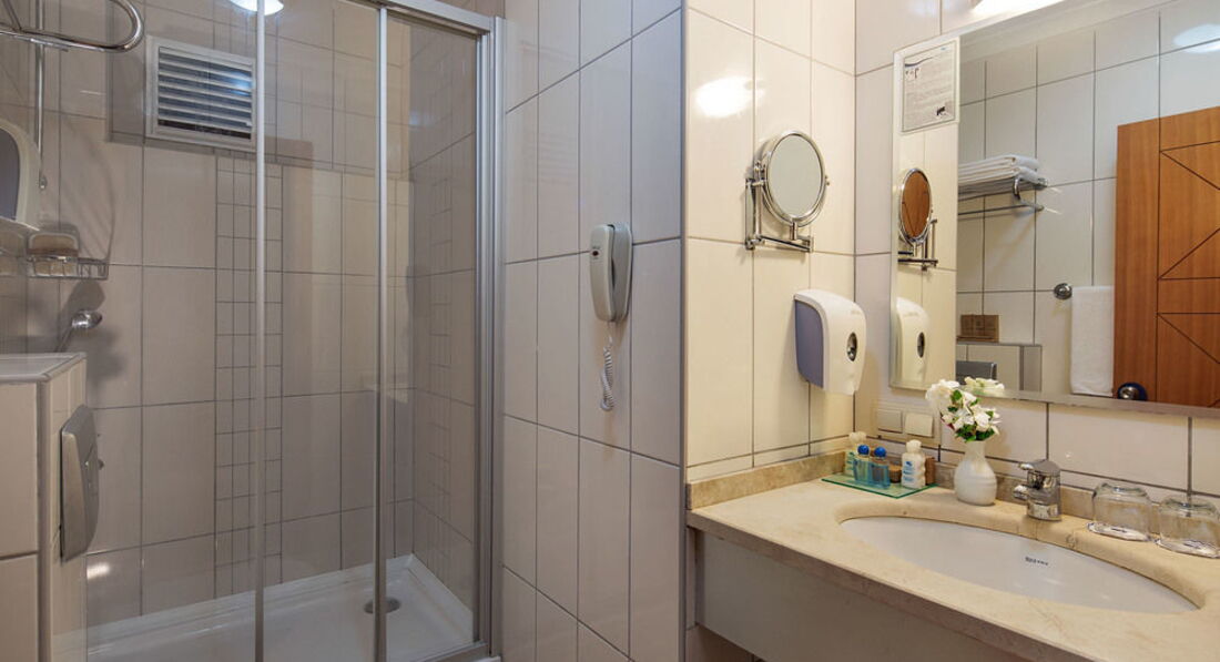 Санузел относительно большой, с душевой кабинкой. Из мыльно-рыльных было два диспенсера с жидким мылом и шампунем, лосьон для тела, кондиционер для волос, ватные диски и палочки, шапочка для купания.