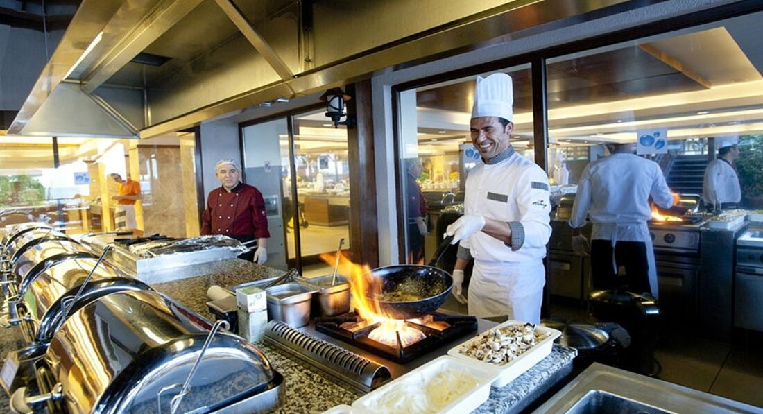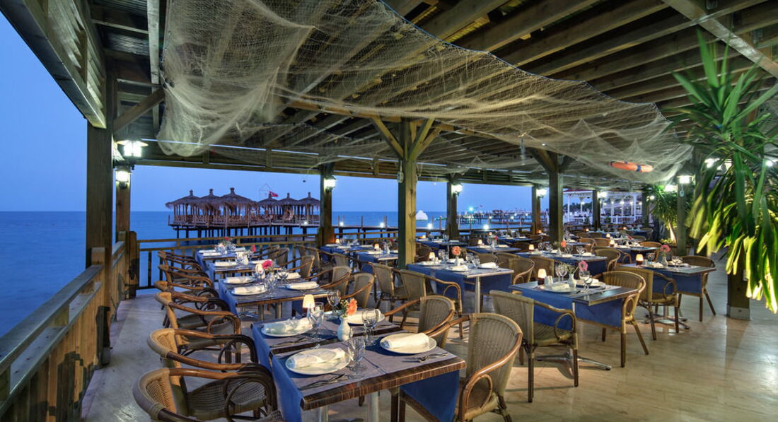 Ресторанов аля-карт заявлено пять – LA FIESTA (Мексиканская кухня), STARFISH (Морепародукты), AZURE (Средиземноморская кухня), OTTOMAN (Турецкая кухня) и FLORA (Барбекю). Рестораны Морепродуктов и Барбекю платно. Из всех остальных ресторанов 1 раз можно какой-то на выбор зарезервировать бесплатно за время отдыха, на специальных стойках на ресепшен, а потом за каждый ресторан идет плата по 15$.