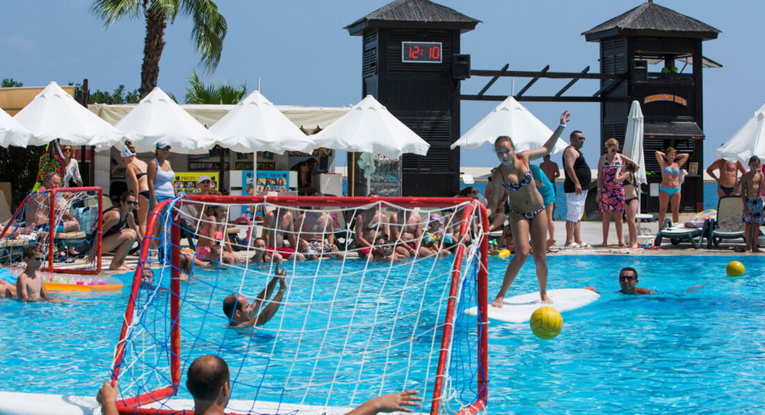 Пару слов про анимацию. Анимационная команда довольно большая, очень позитивная. Каждое утро в 10-00 все дружно проходили возле бассейнов и на пляже, здоровались и приглашали на различные активити в течение дня. На стенде висело расписание и в нем были заявлены: дартс, бочча, утренняя гимнатика, водное поло, аквааэробика, волейбол, баскетбол, настольный теннис. Вечером всегда проходило мини-диско для деток, затем в амфитеатре проводились различные шоу, но мы туда ни разу не дошли.